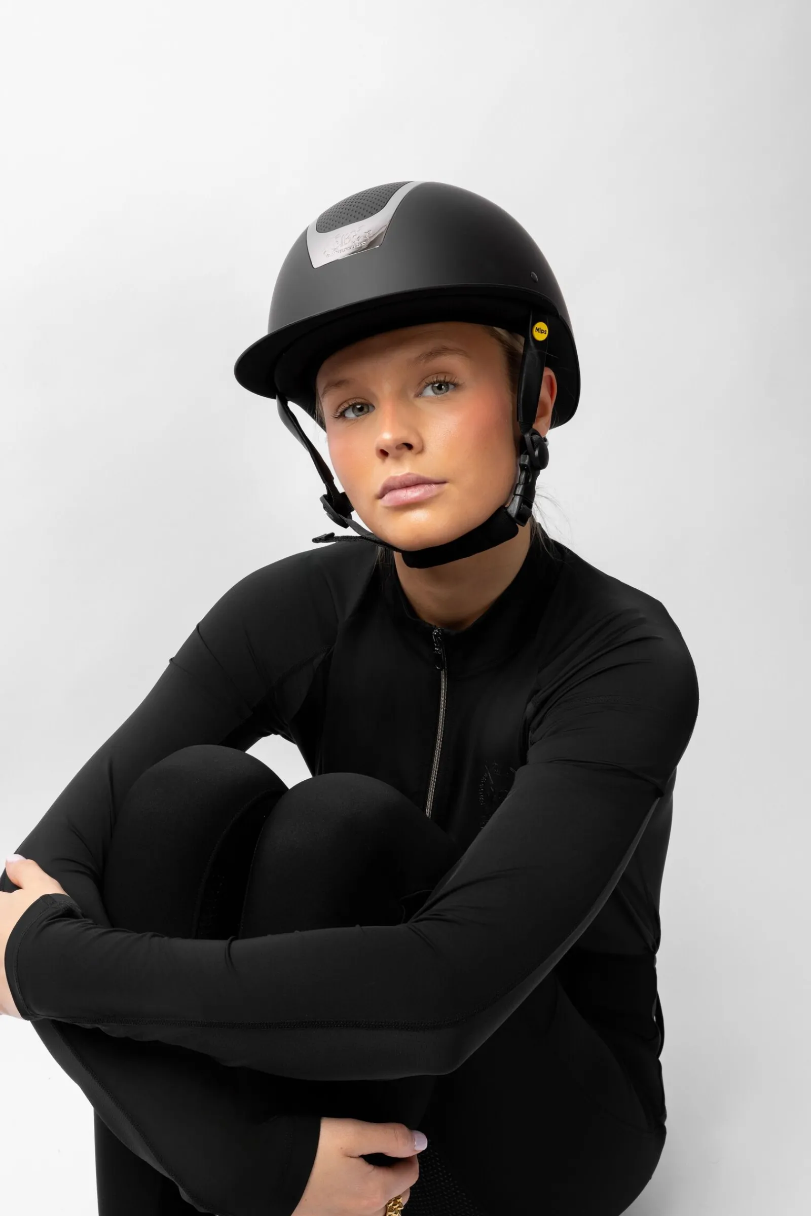 Vår B Vertigo Majoris hjelm er utstyrt med moderne Mips® som beskytter hodet med de høyeste sikkerhetsnivåene i tilfelle en ulykke. Hjelmen er supertynn takket være en skinnende overflate, og gir luft gjennom ventilasjonsåpninger. Skallet motstår kraftige slag, og den komfortable innsiden passer perfekt på hodet. Du kan bruke hjulsystemet for å justere hjelmen til din størrelse. Det stilige designet som samtidig er tidløst gjør B Vertigo Majoris til en langvarig del av din ridegarderobe.
