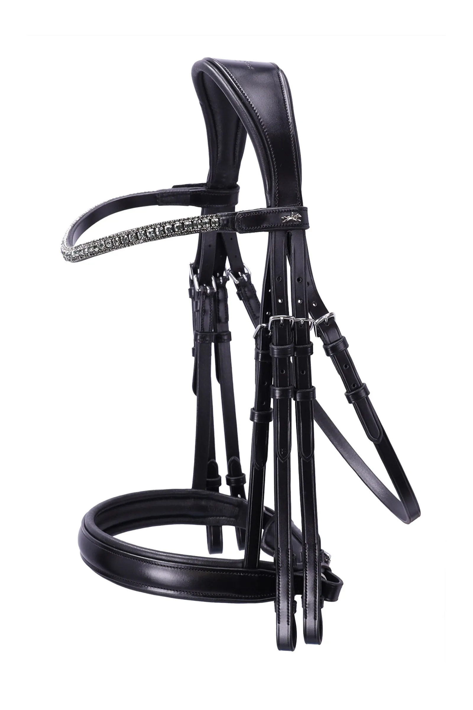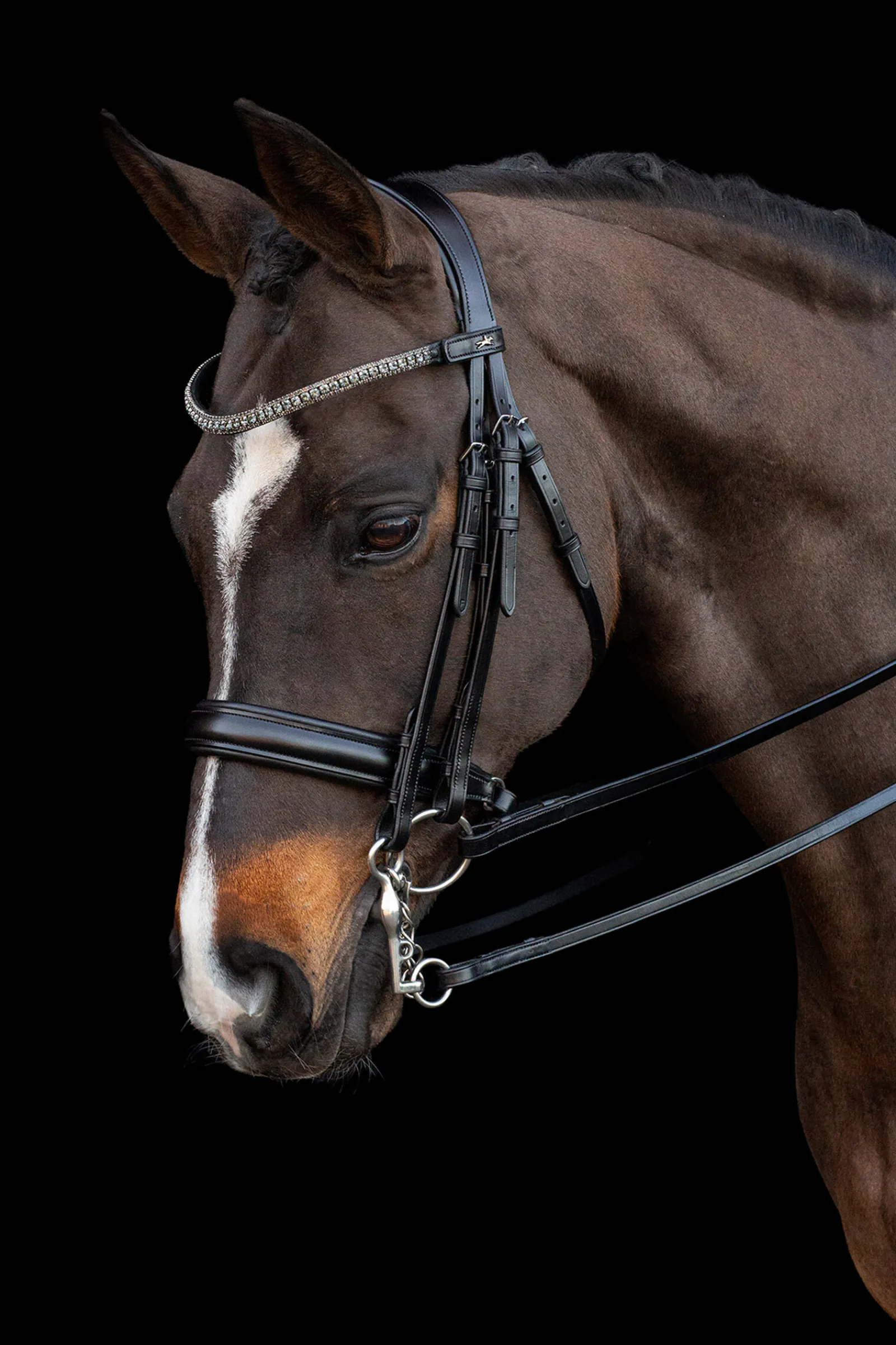 Den nye «Brindisi» dressur kandar fra Classic Line er laget av eco-lær og har et spesielt komfortabelt, bredt spesial-naseband, som er tilgjengelig med hvit eller svart fôr. Som alle Schockemöhle trenser og kandarer er «Brindisi» selvfølgelig nikkelfri.