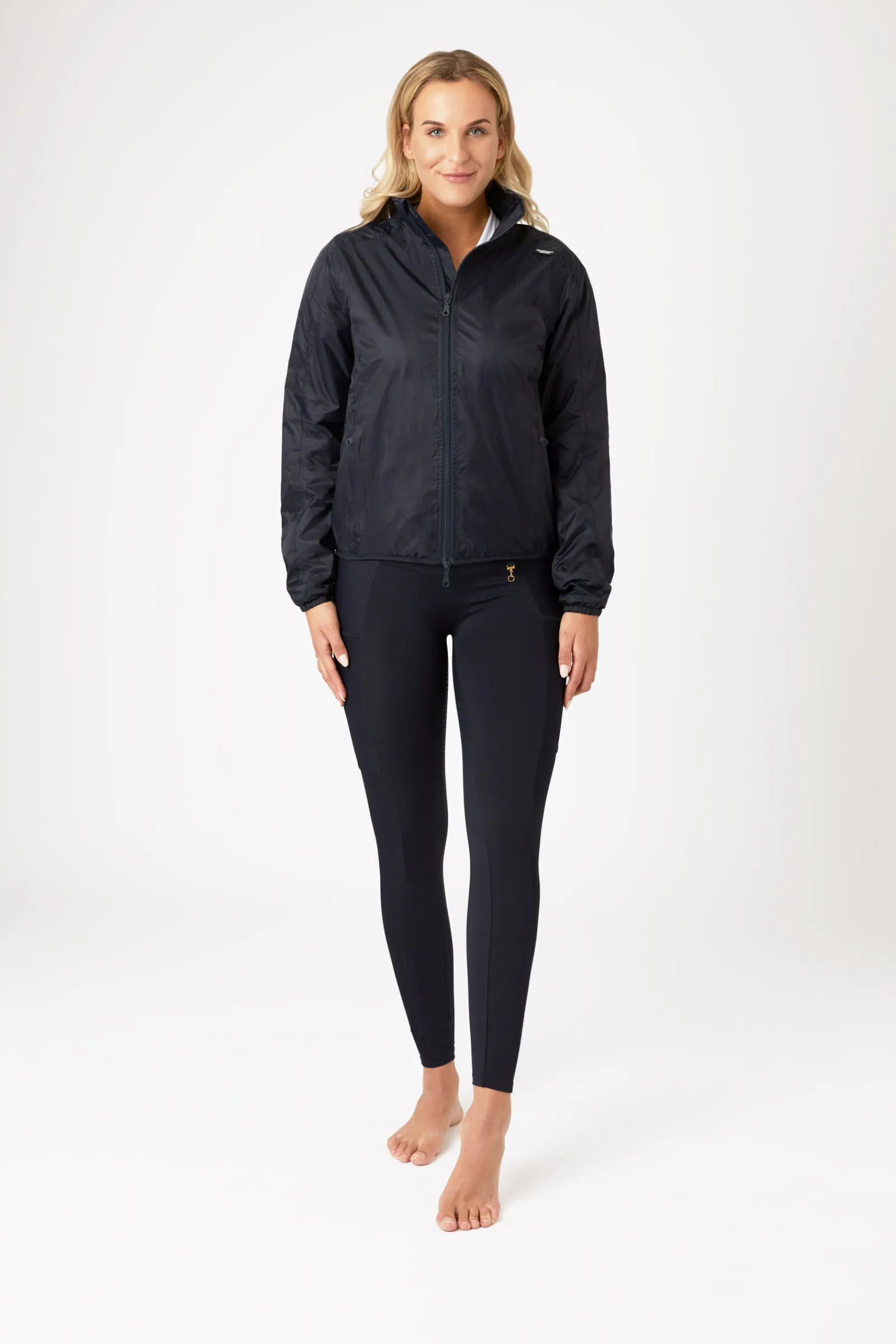 På baksiden av kragen er det brodert Horze Equestrian-logoen, noe som gir en enkel detalj til denne veldesignede, tettsittende jakken med toveis glidelås og sidelommer. Det pustende og vanntette stoffet beveger seg med deg mens du rir, og hetten er gjemt inni kragen slik at du kan ta den fram når du trenger ekstra beskyttelse. Jakken kan broderes med eget broderi for et personlig preg.