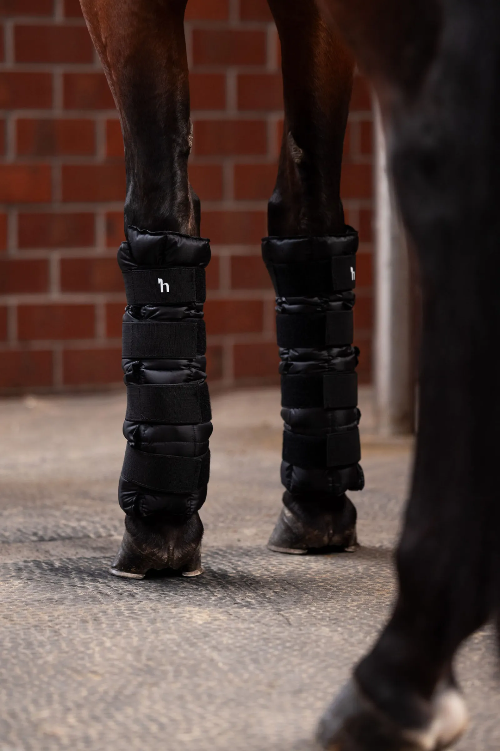 Hurtig kjølebelegg er komfortable for hestens bein etter en treningsøkt. Dette er en enkel og rask løsning som begrenser hevelser med kulde. Disse beleggene er myke når de er frosne, og er enkle å legge rundt hestens bein. Fire borrelåser lar deg bestemme graden av press rundt hestens bein. Disse beleggene er gode til behandling av leddgikt, bløtvev, sener og leddbånd.