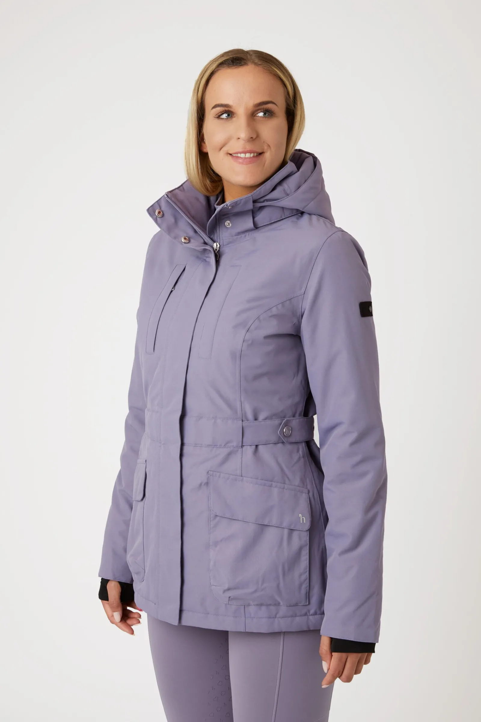 Vår Jadine vinterjakke er laget av robust, vanntett materiale.Den er lett, men samtidig varm.Pustende stoff holder deg godt ventilert når du rir.En glidelås bak sikrer plass når du rir.Hetten er avtakbar.Glidelåslommer er perfekt for oppbevaring av telefon og nøkler.