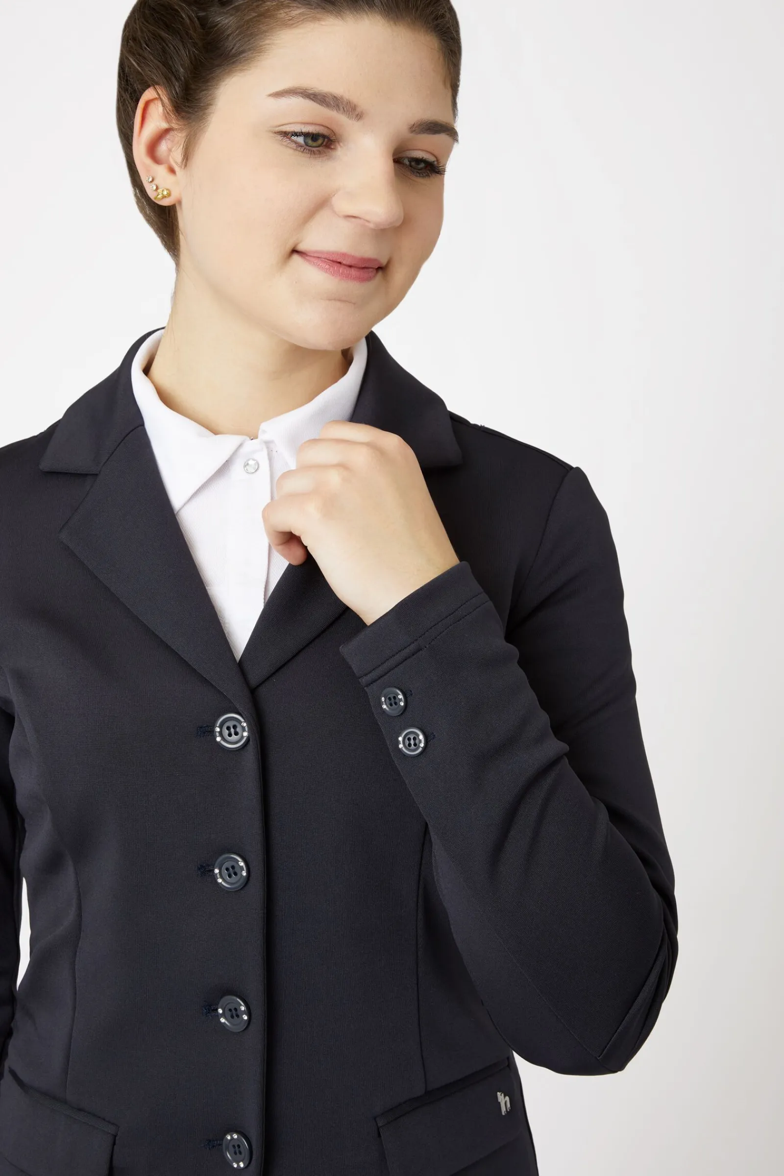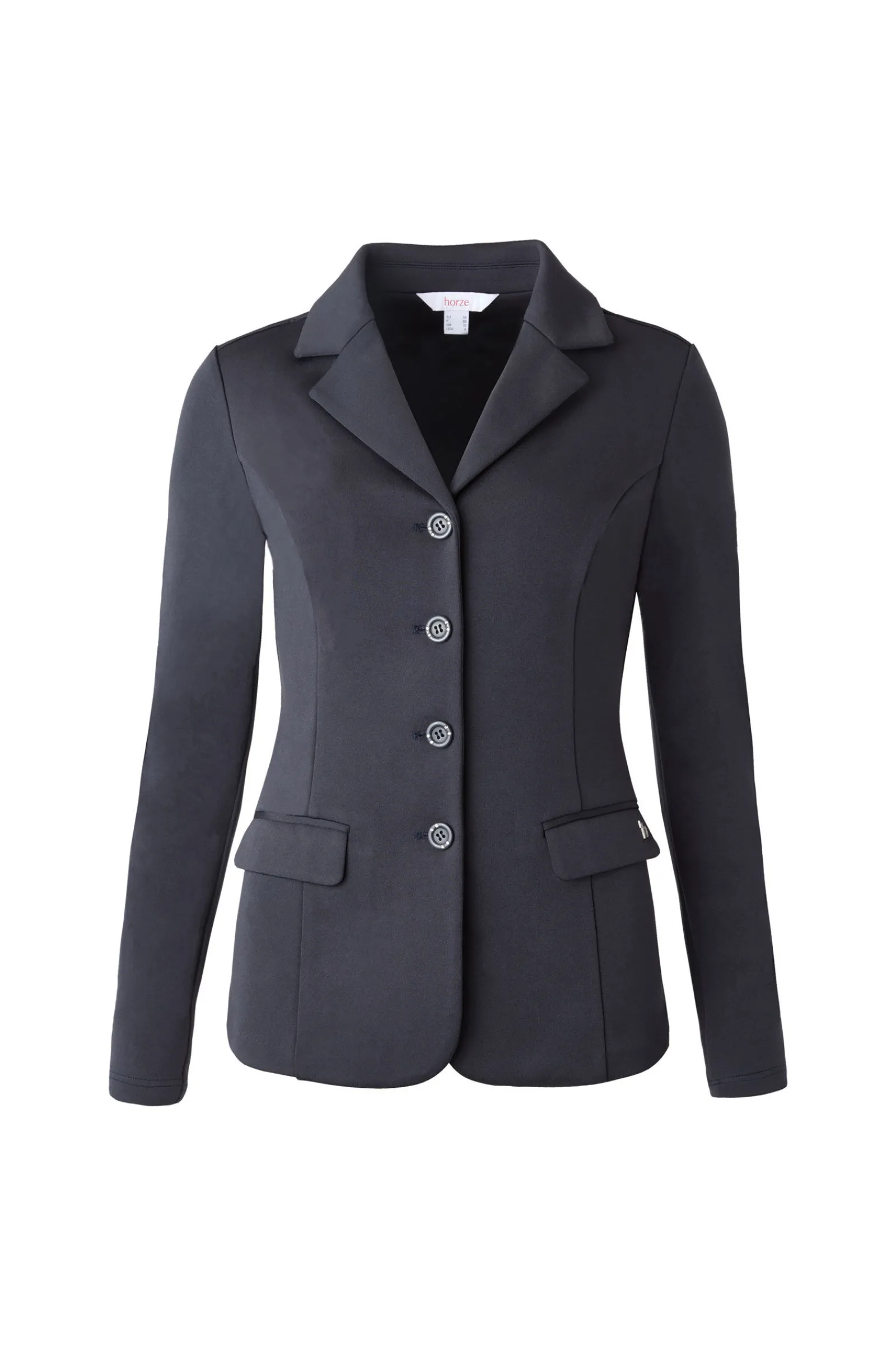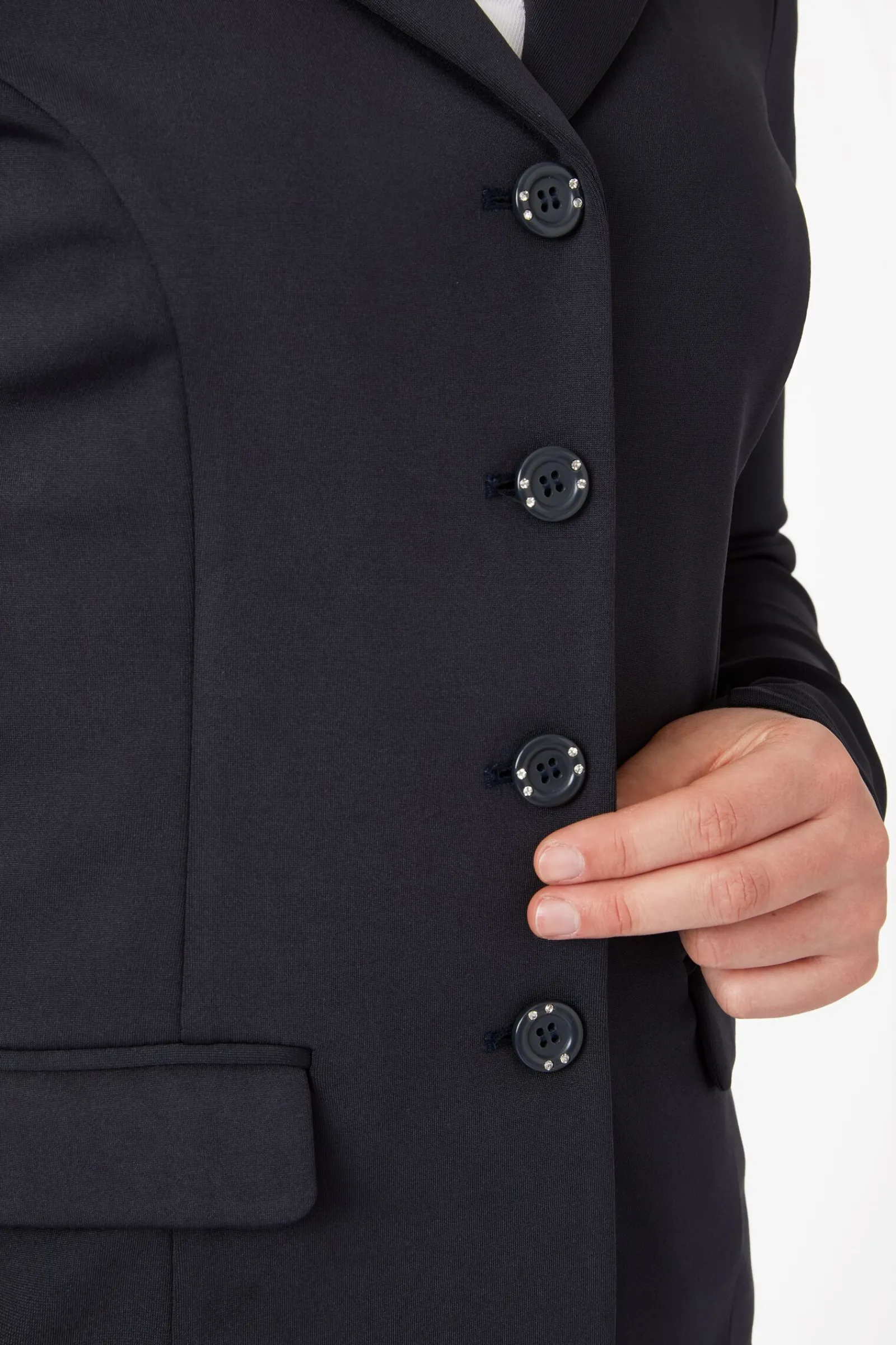 Horze Ada stevnejakke er laget av mykt, komfortabelt materiale som ikke forhindrer bevegelsen.Klassisk stil og klassiske farger gjør denne til det perfekte tilskuddet til ditt stevneantrekk, og den vil ikke gå av moten.De diskrete metalldetaljene gir et fint preg.Bruk denne jakken med dine favoritt-ridebukser og ridestøvler.
