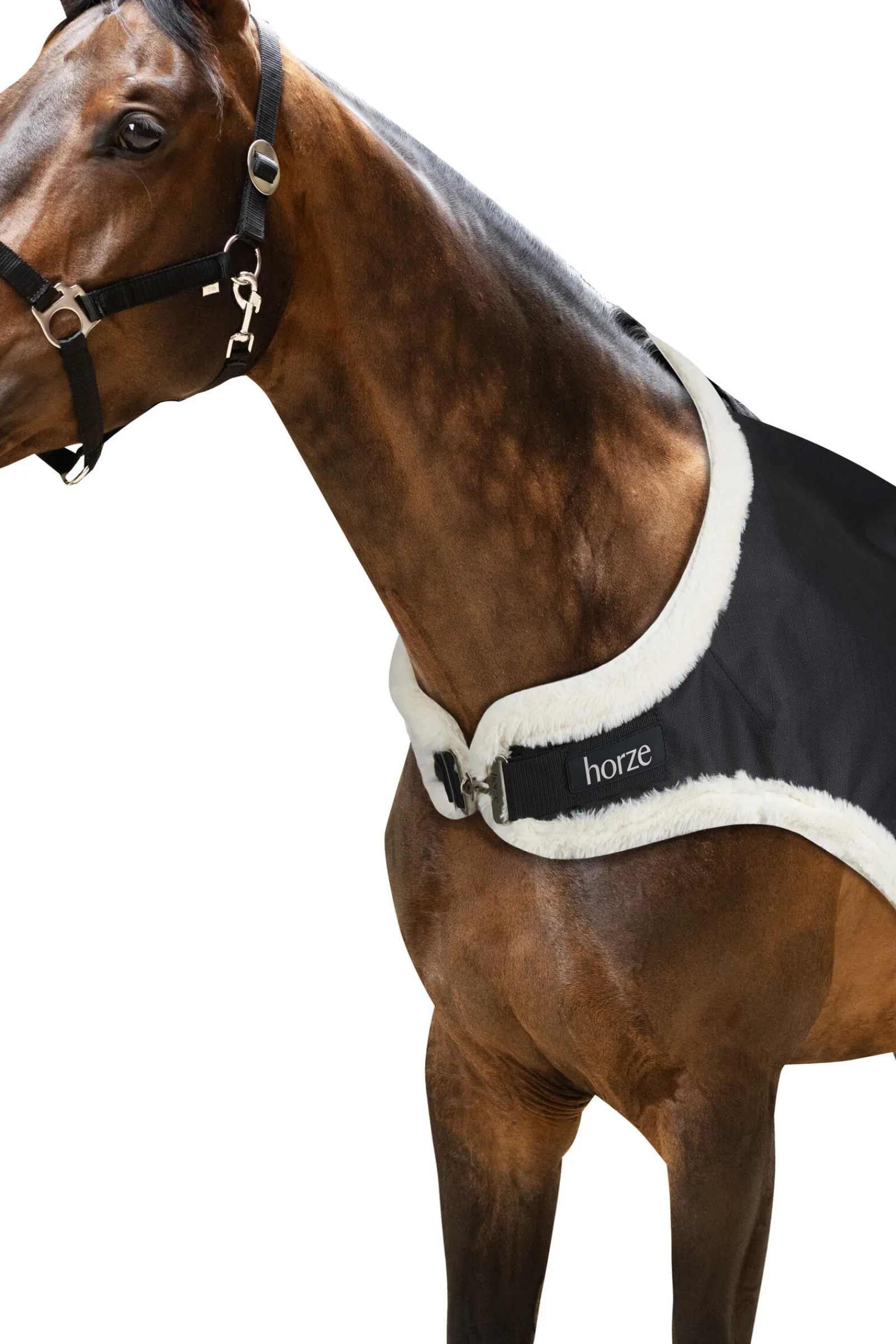 Dekkenet er spesielt designet for komfortabel bruk mens hesten din er i skrittemaskin. Det kommer med en praktisk lukking foran med T-spenne, noe som sikrer en sikker passform. Fuskepelsen ved skuldre og manke forhindrer gnag. Halestroppen med klips og kryssgjorder holder dekkenet trygt på plass. For ekstra fôring kan du bruke dette dekkenet med den matchende lineren på 150 gram (#24428). Gjør settet komplett med den matchende halsen (#24189) for en helhetlig beskyttelse.