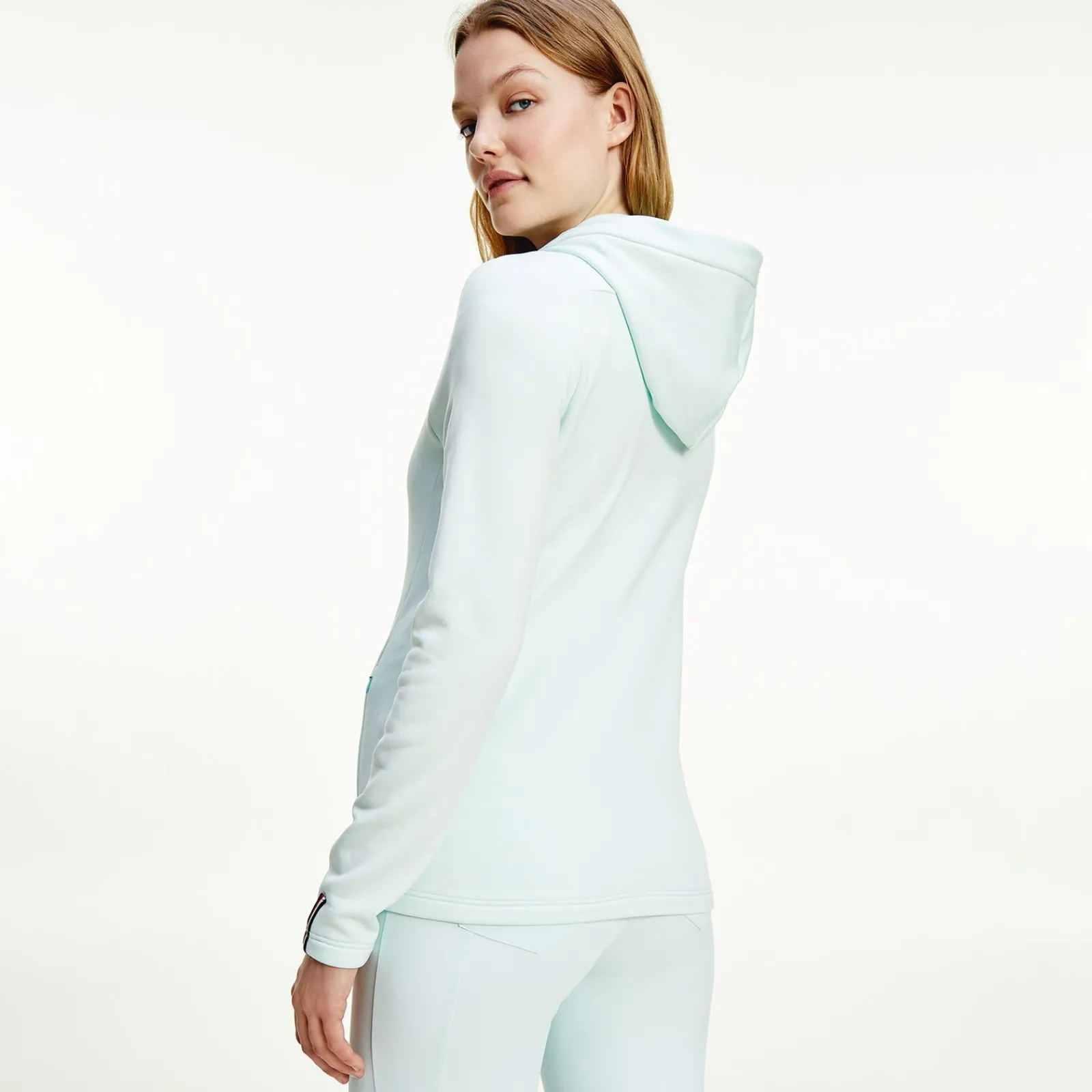 En funksjonell treningsjakke i diskrete, enkle farger med skulte sidelommer med glidelås, kontrastglidelås midt på foran og en hette med drasnorer med metalltupp.Logobroderi øverst til venstre på kroppen.TH Global stripe-bånd midt på bak, og på innsiden av hetten.