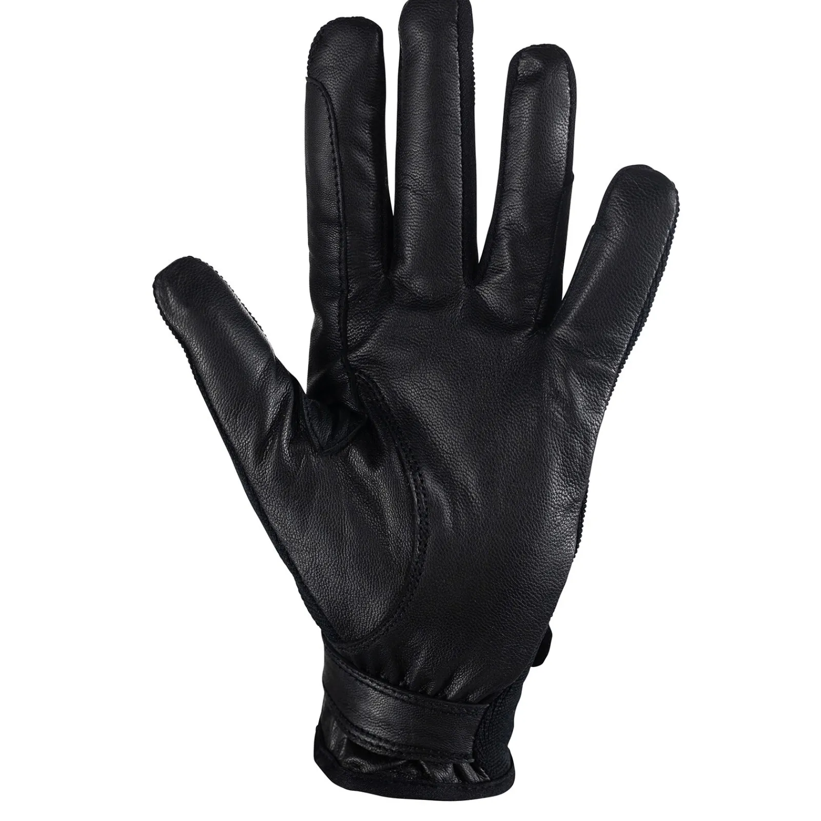 Laget av mykt, sterkt geiteskinn for et elegant utseende, fôret med thinsulate-stoff for ekstra varme og komfort. Stram rundt håndleddet med den justerbare stroppen for å sikre at disse hanskene holder seg på plass når du rir eller jobber i stallen.