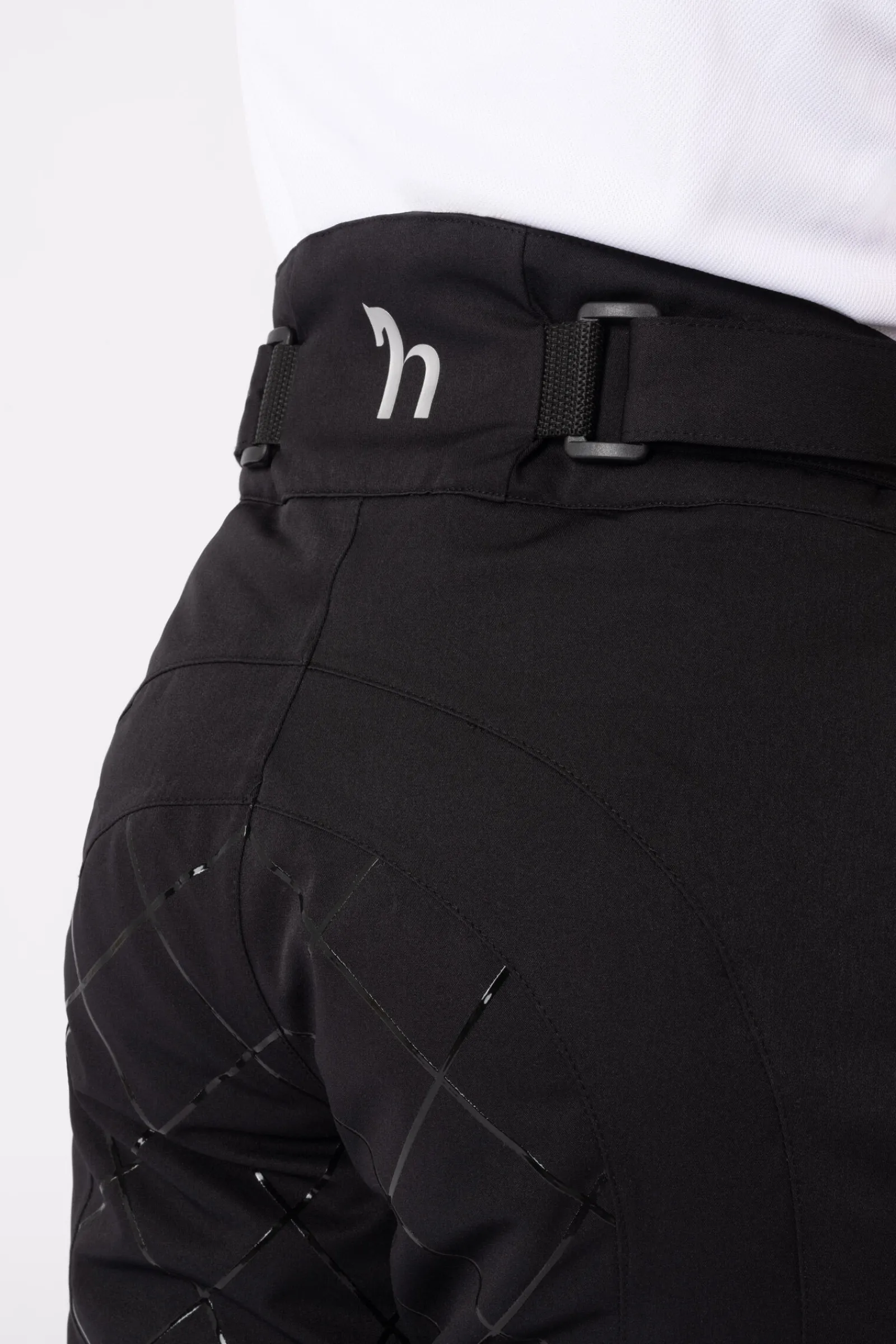Få ekstra varme med disse stilige, komfortabelt fôrede ridebuksene til jenter, i vanntett stoff. Teknisk silikontrykk i setet gir ekstra grep i salen. Ridebuksen med høyt liv bak på ryggen gir både en god passform og perfekt form. Glidelåslommer foran er utmerket for å oppbevare nøkler eller gulrøtter.