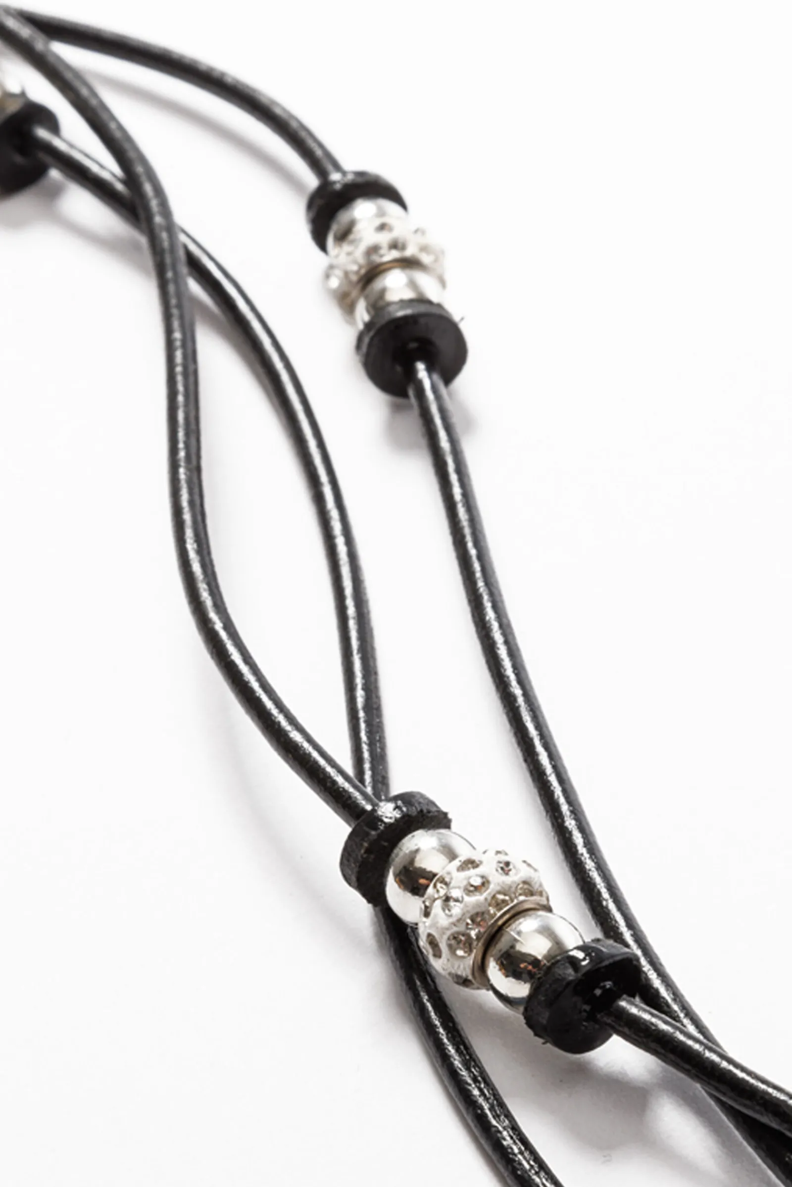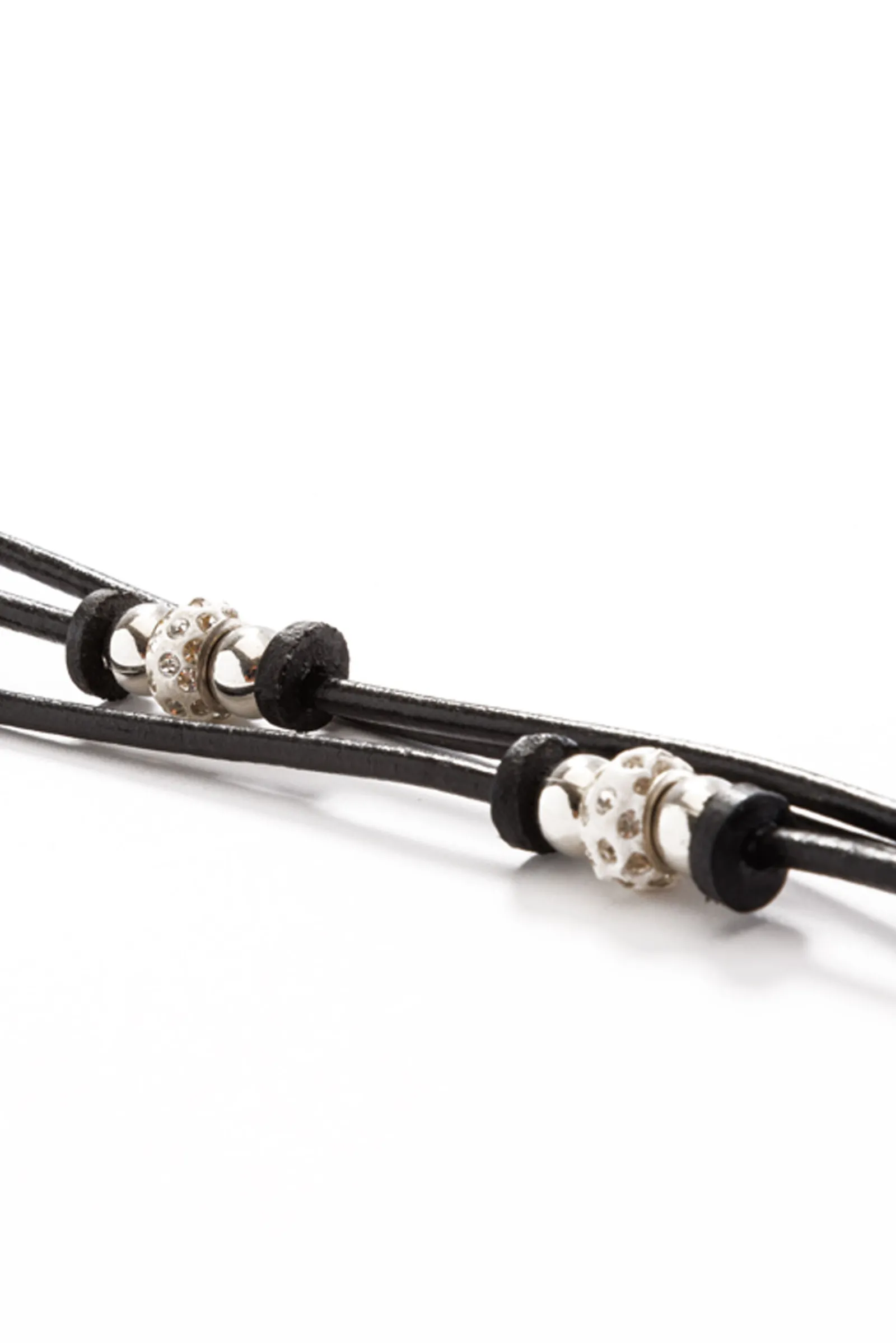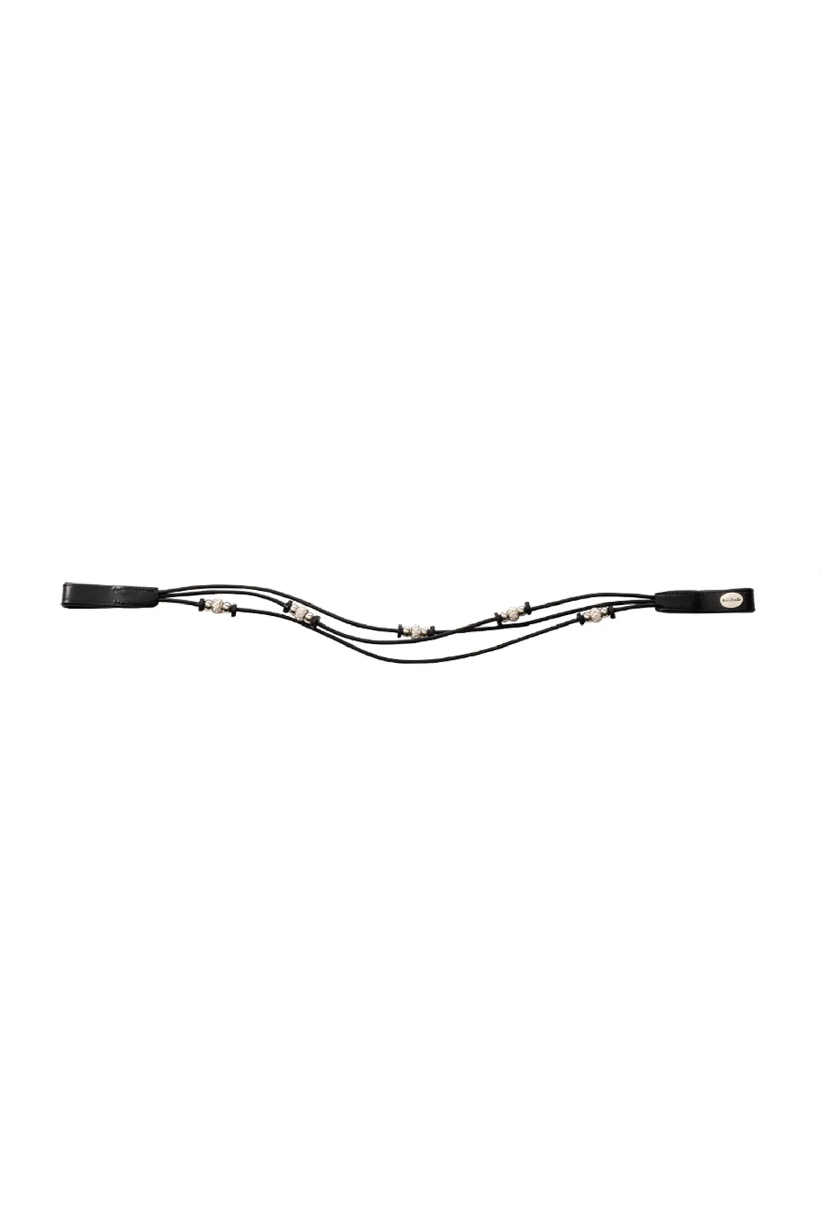 Et blikkfang på hestens hode – det unike 窶廨race窶åndet i armbåndsutseende består av 3 lærstrenger dekorert med sølvfargede og hvite elementer. De hvite elementene inneholder også små sølvfargede rhinestones.