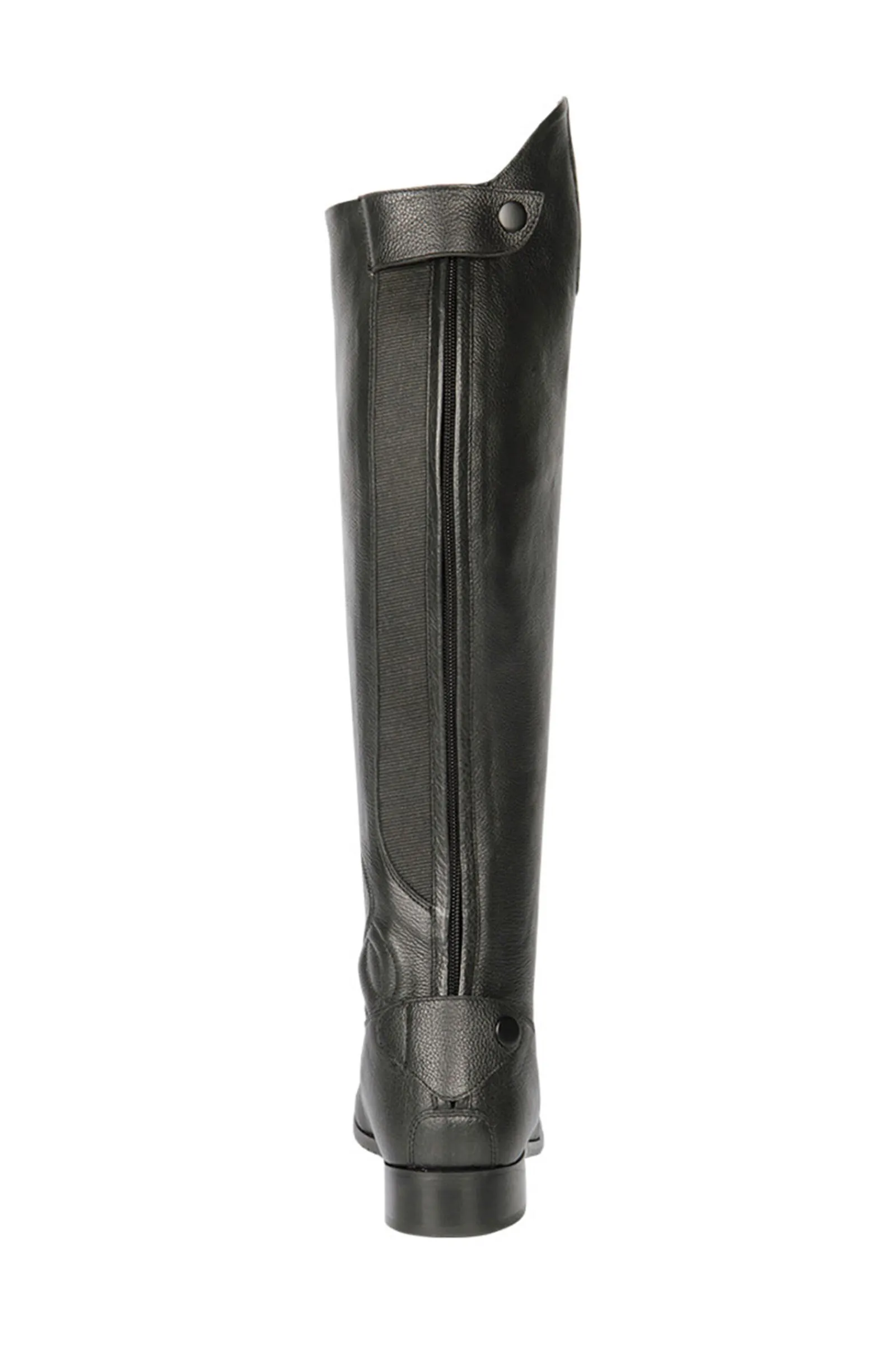 Fully grained leather boots with dressage arch, elasticated laces and a long zip on the back. Fully leather lined for optimum breathability. A leather protective flap covers the top of the zip that can be easily opened and closed with a button. With soft reinforcement on the ankle to provide optimum comfort. With a chic, handmade sole.