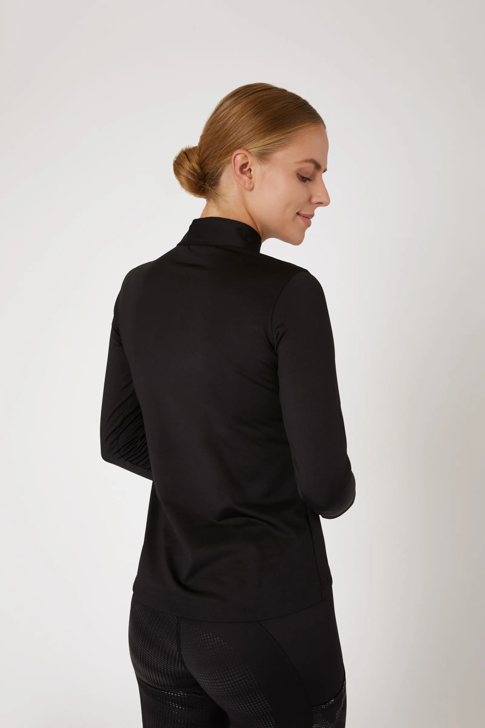 Den pustende Horze Luminox langermet genser er elastisk og komfortabel.Den børstede innsiden er svært myk.Den høy/lave kanten gir ekstra komfort og forhindrer ikke bevegelsene.Bruk den aleine eller som et baselag under din favorittjakke.