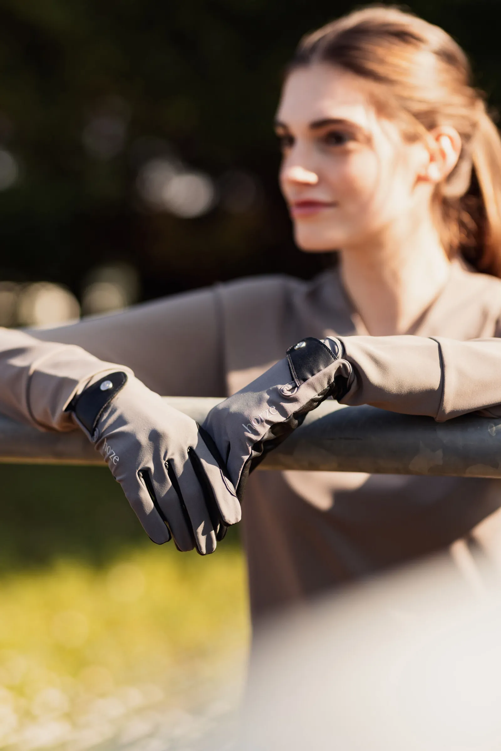 90% polyester, 10% elastan. Håndflate: 100% polyuretan