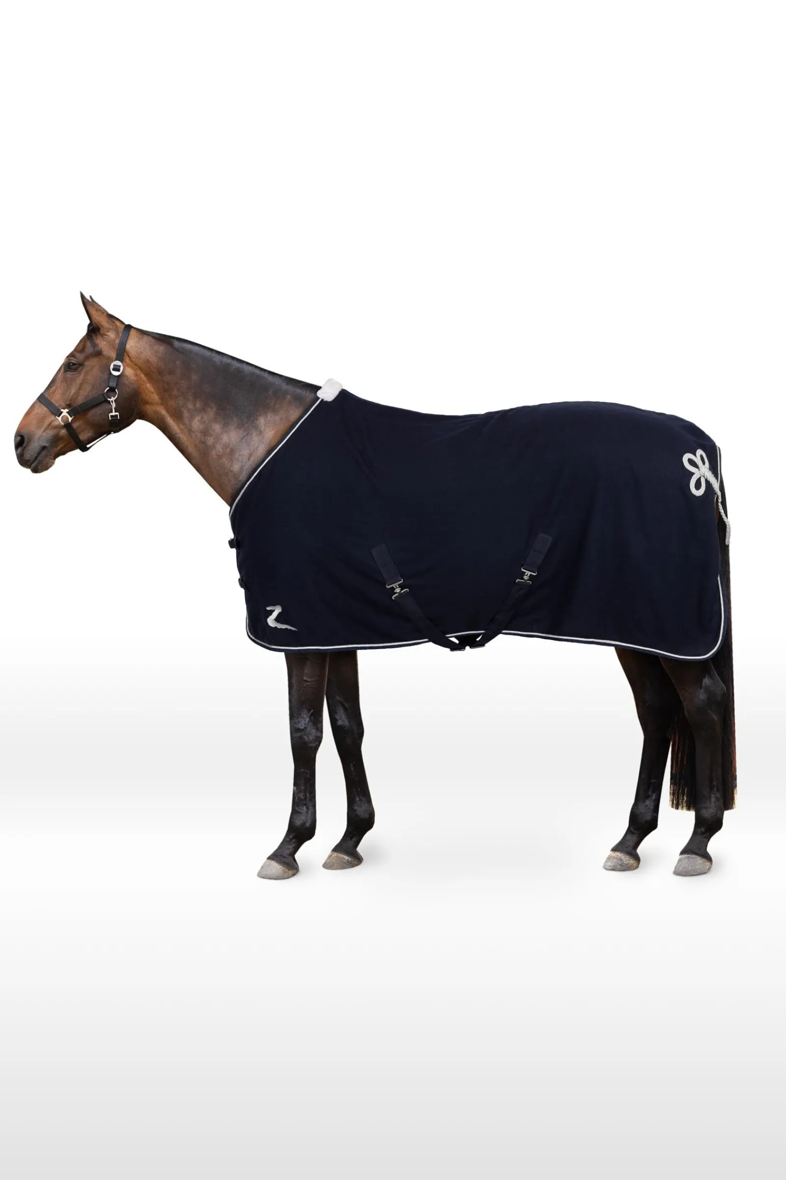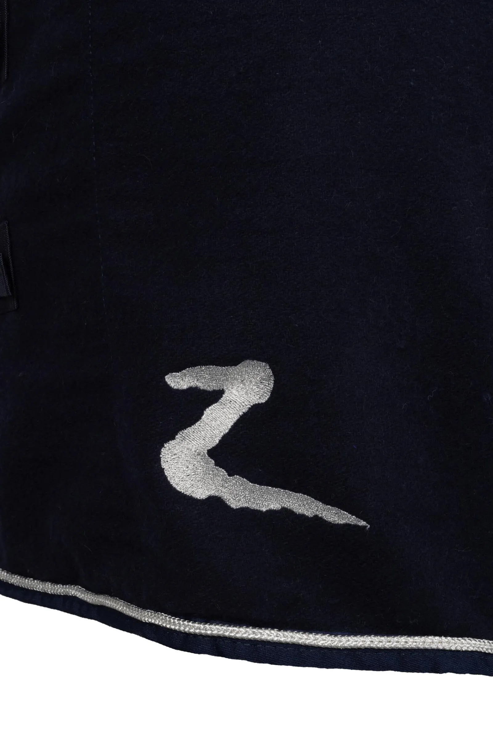 Tykk, rik ull med mye sølvdetaljer gjør dette dekkenet til et perfekt valg å bruke når du skal ut blant andre. Den markante utsmykningen på hoften er et klassisk design og komplimenterer det nydelige kantbåndet i sølv, og Z-logoen. Dette pene dekkenet vil bli ditt favorittvalg når du er ute og reiser, ettersom hesten vil komme fram frisk og pen når den lastes av for ditt neste stevne. Pustende ull betyr at hesten vil holde varmen, samtidig som den ikke blir for varm. Det holdbare designet ser deilikat ut, men er solid, og holder i vask slik at dekkenet kan brukes sesong etter sesong.