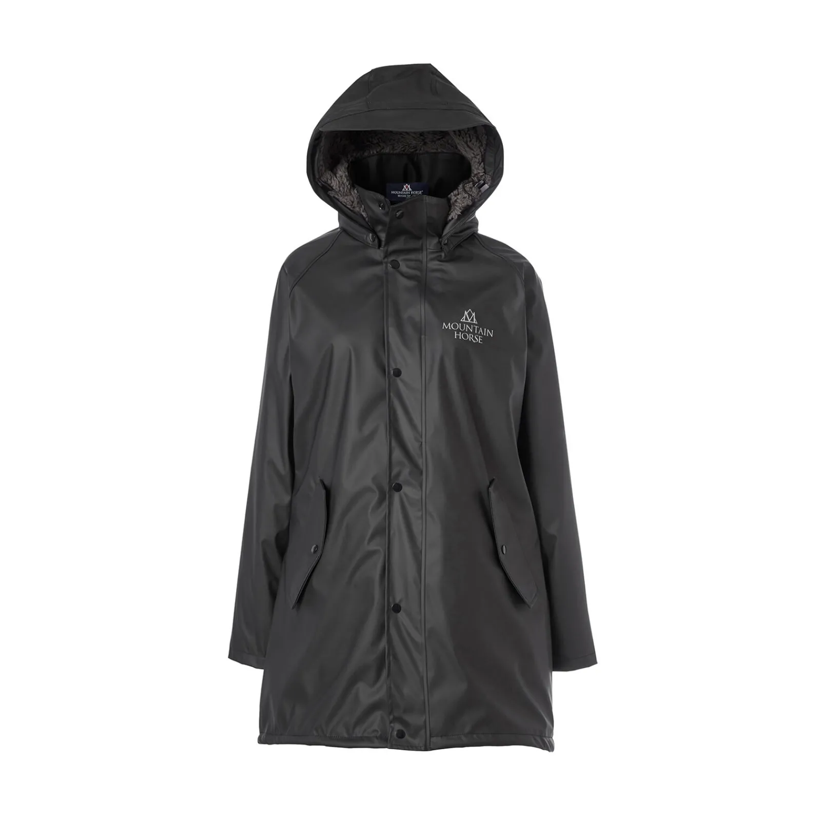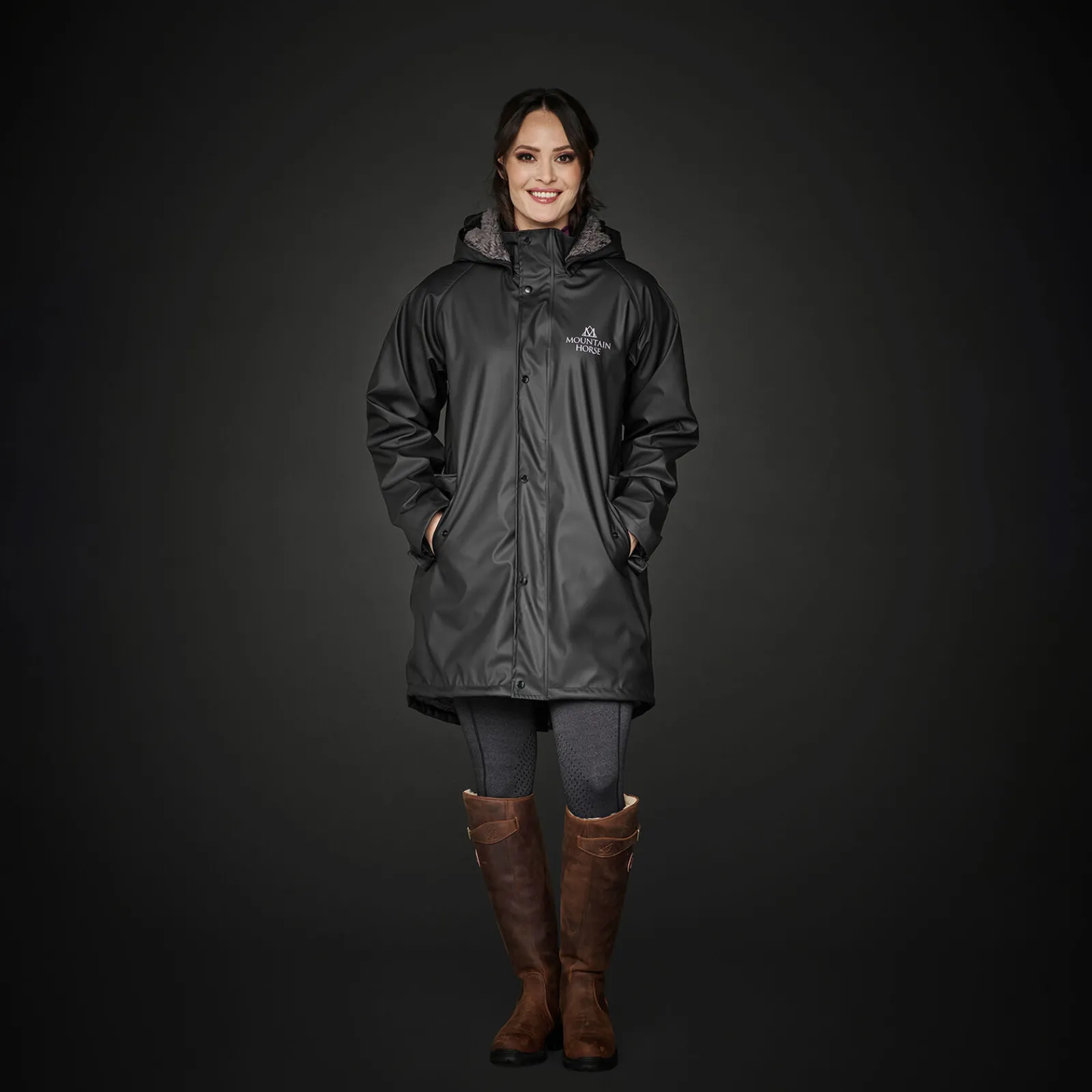 Denne helt vanntette regnfrakken med sveisede sømmer vil holde deg tørr selv i det kraftigste regnværet.Fôret med mykt, behagelig pile-stoff som er komfortabelt å bruke.To store frontlommer som er perfekte for å oppbevare hestegodbiter eller telefonen din.Ridesplitten bak kombinert med toveis glidelås gjør denne frakken perfekt til ridning.Reflekterende detaljer gir nok synlighet i mørket.