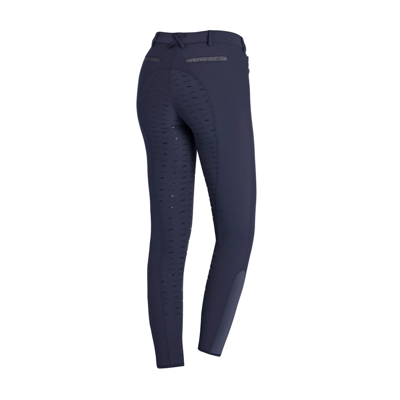 Pustende, fleksibel og holder allikevel formen: Chayenne helforsterket ridebukse til dame fra Schockemöhle Sports overbeviser med maksimal funksjonalitet.Det elastiske stoffet er fukttransporterende og gir UV-beskyttelse.Også praktisk: den runde lommen med ekstra liten myntlomme.Det helforsterkede setet gir god støtte i salen.En logo med pyntesteiner på venstre ben og uekte lommer dekorert med glitterteip bak på ryggen lar sporty ryttere skinne!