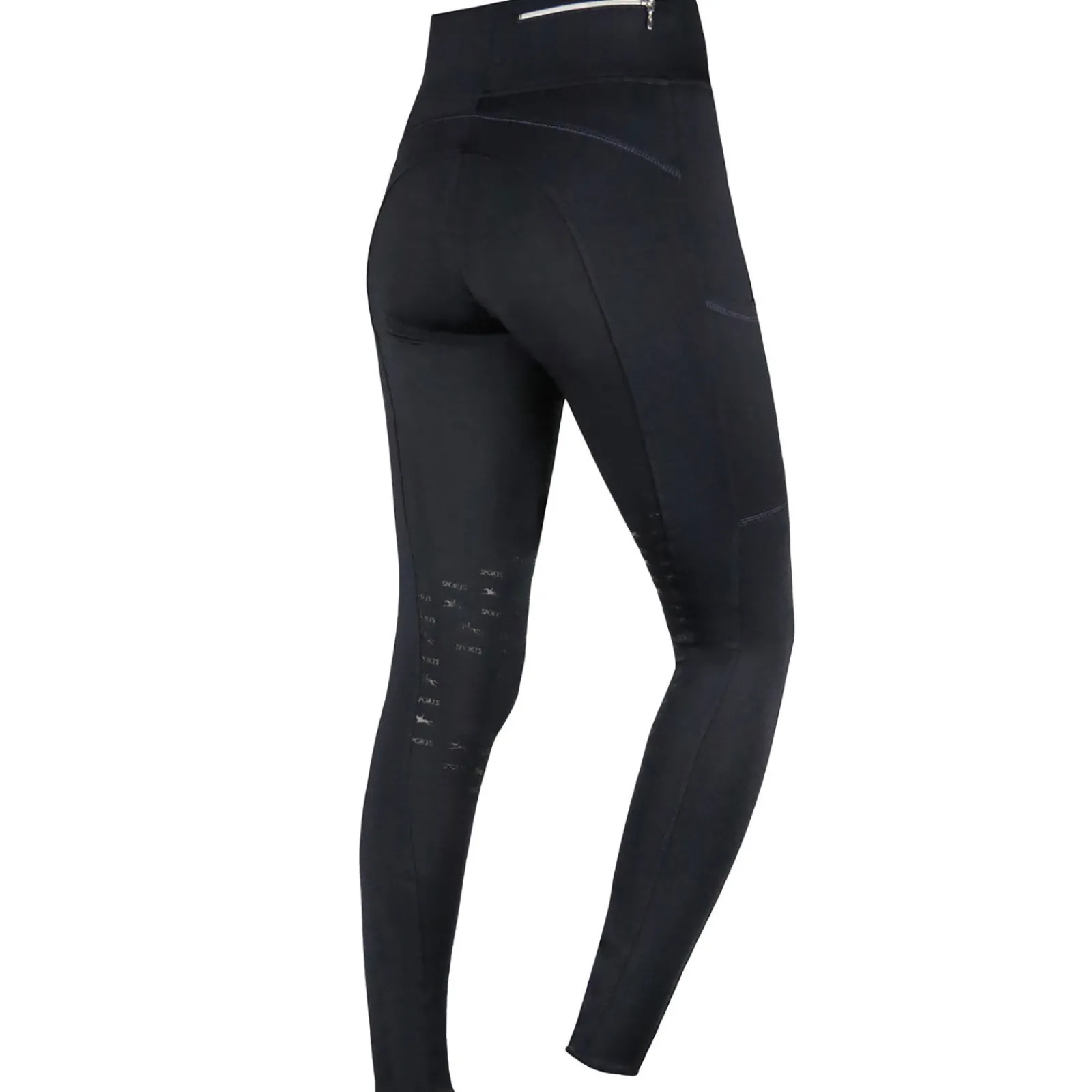 - Bredt og mykt i livet, med mye elastikk, samt broderi med hestelogo, glidelåslomme bak på linningen