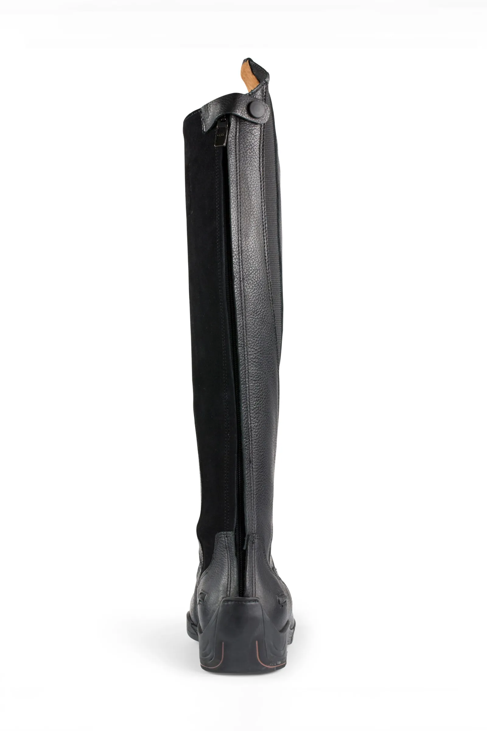 Europeiske ridestøvler av supermykt lær i høy kvalitet. De har kuskinn ytterst og skaftet er fôret med skinn og er semsket på innsiden av beinet. Elastikk langs skaftet gir en utmerket passform. Glidelåsen bak og gummierte sporehviler er fine egenskaper. Oversiden av foten har ekstra mykt lær som lar foten bevege seg i riktig posisjon i stigbøylen. Gummisålen har anti-skli og gir et godt grep i stigbøylen. Et fôr med Thermy-Tex formularen gir en anti-bakteriell/anti-lukt funksjon. Disse lærstøvlene vil gi deg komfort og eleganse.