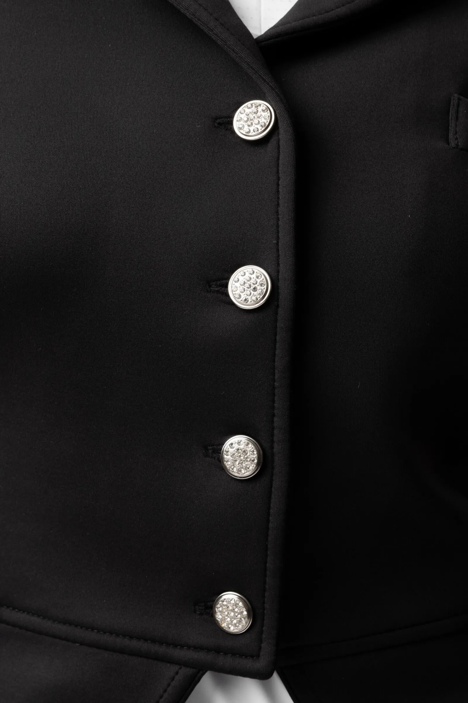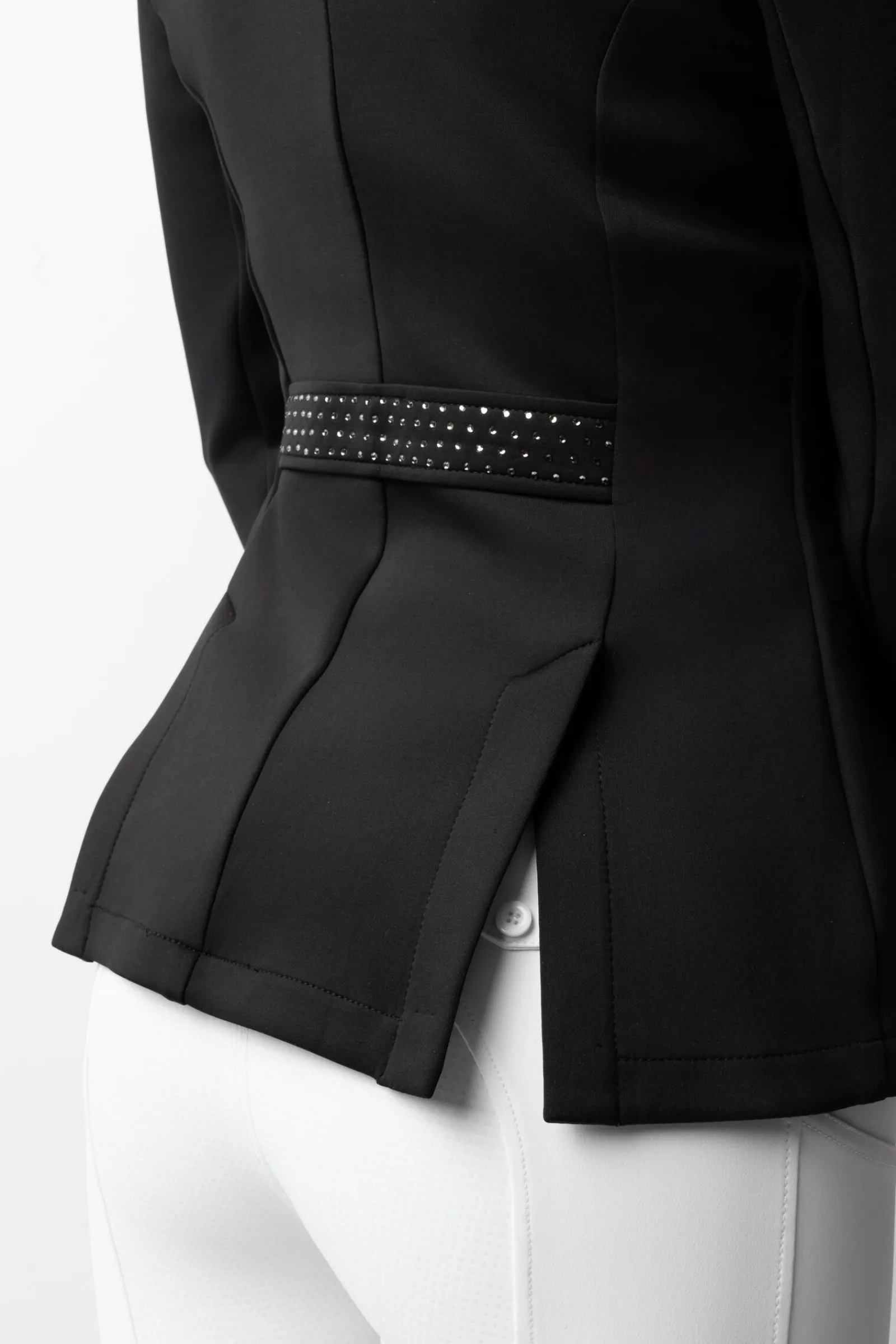 Diskrete krystaller gjør jakken til et blikkfang, uten at det blir for mye. Den kortere fronten og det elastiske materialet gjør ridningen svært komfortabel. Upåklagelig kvalitet og perfekt passform som vil få deg til å se profesjonell ut, samt gi deg god bevegelsesfrihet.