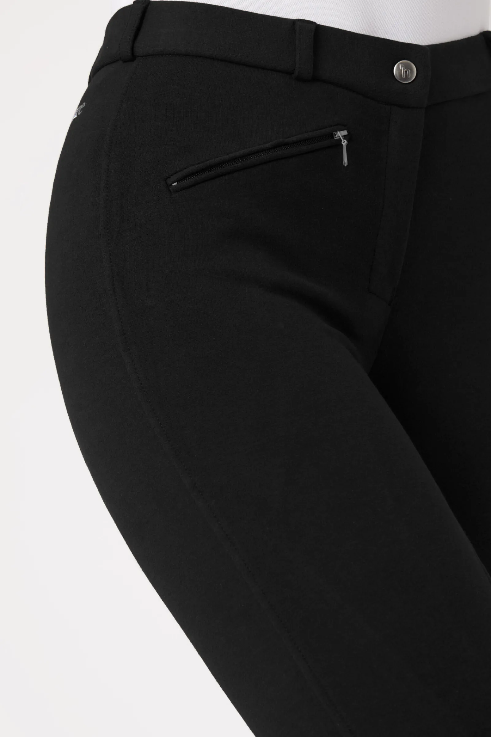 Stoff som føles som jersey gir disse treningsridebuksene myk komfort. Disse ridebuksene er et fint valg når du ikke ønsker formaliteten til de finere ridebuksene. Det myke stoffet er varmt og pustende, og er ideelt for ettermiddagsritt i nærheten av stallen, eller på lengre turer. De enkle glidelåslommene foran vil passe til en godbit til hesten, slik at du kan gi den en belønning etter en hyggelig treningsøkt. Du vil elske komforten til disse pene ridebuksene.