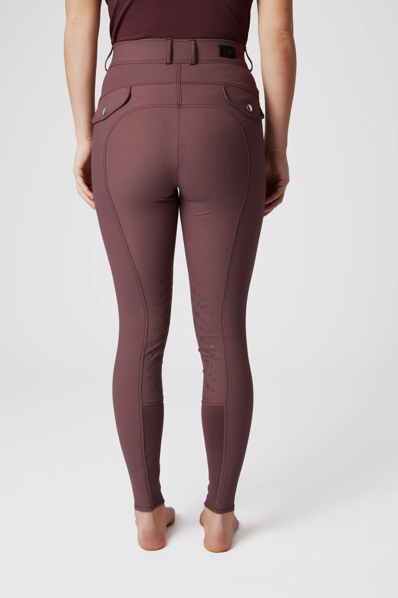 Horze Andrea ridebukser er dekorert med flotte sømmer ned fronten, noe som forlenger beina dine.Livet med tre knapper er høyere foran, noe som gir støtte og er en stilig, flatterende detalj.To glidelåslommer gir plass til dine eiendeler, og kneforsterkingen med silikon holder deg fleksibel i salen.