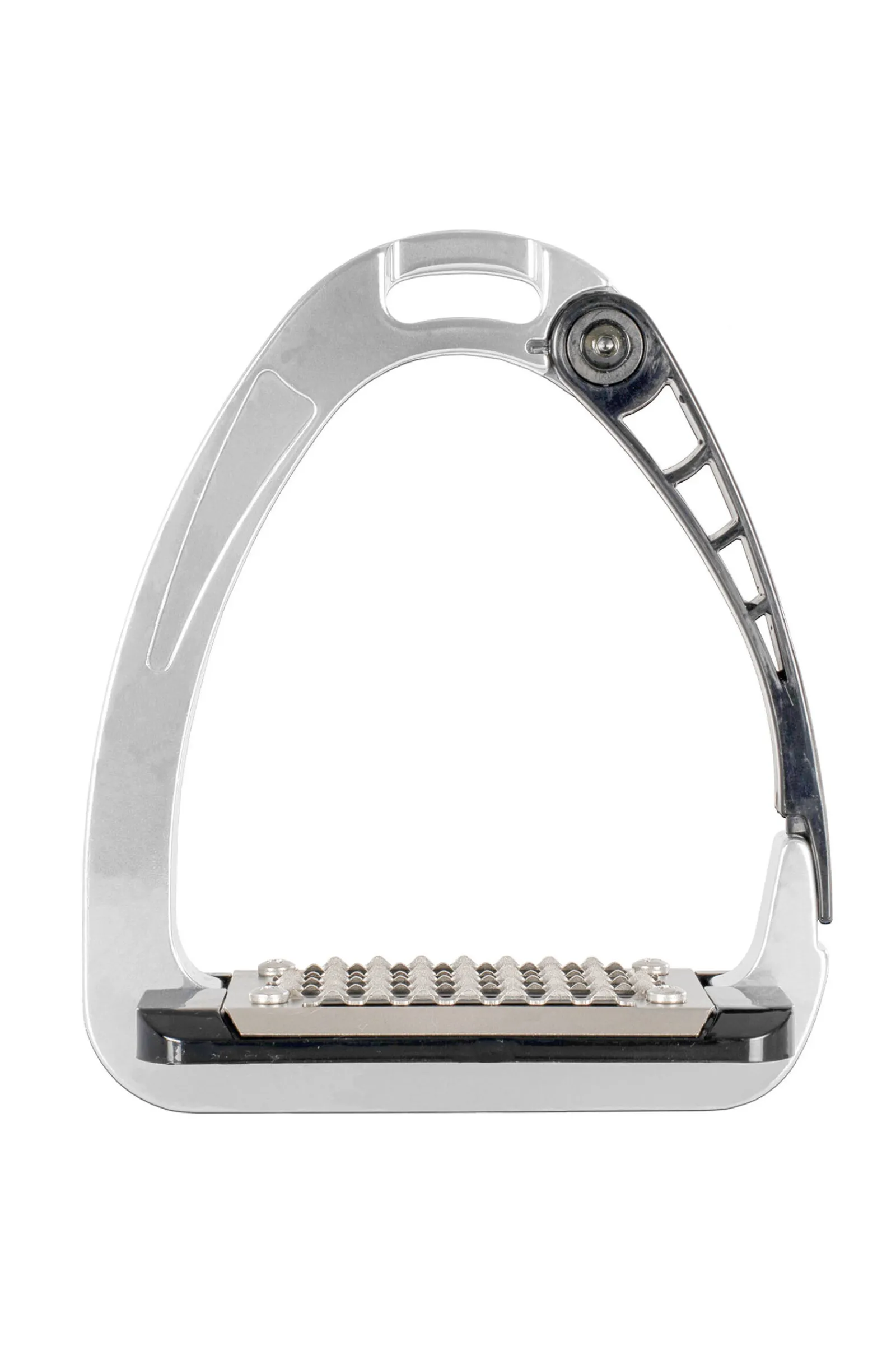- Plassert mellom den nedre delen av den svingbare stigbøylearmen og fotstøtteplaten/tråflaten