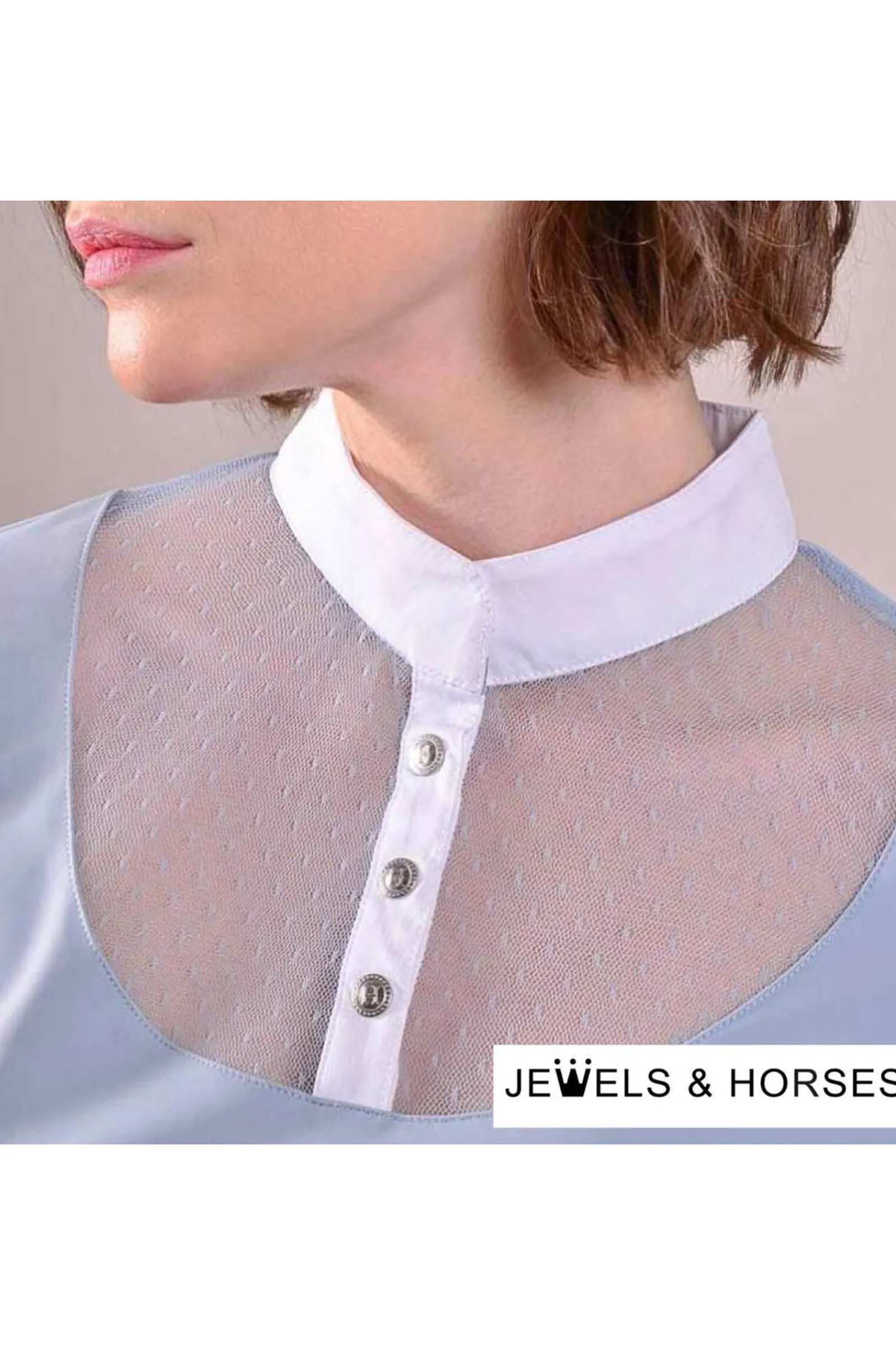 Copinta ridepoloskjorte er laget av et lett og komfortabelt materiale.Den er feminin og sofistikert skåret, noe som gjør den til noe du bare MÅ HA i garderoben din.Ideell å bruke for ridning i utmerket komfort om sommeren.Den lukkes med trykknapper foran på kragen.