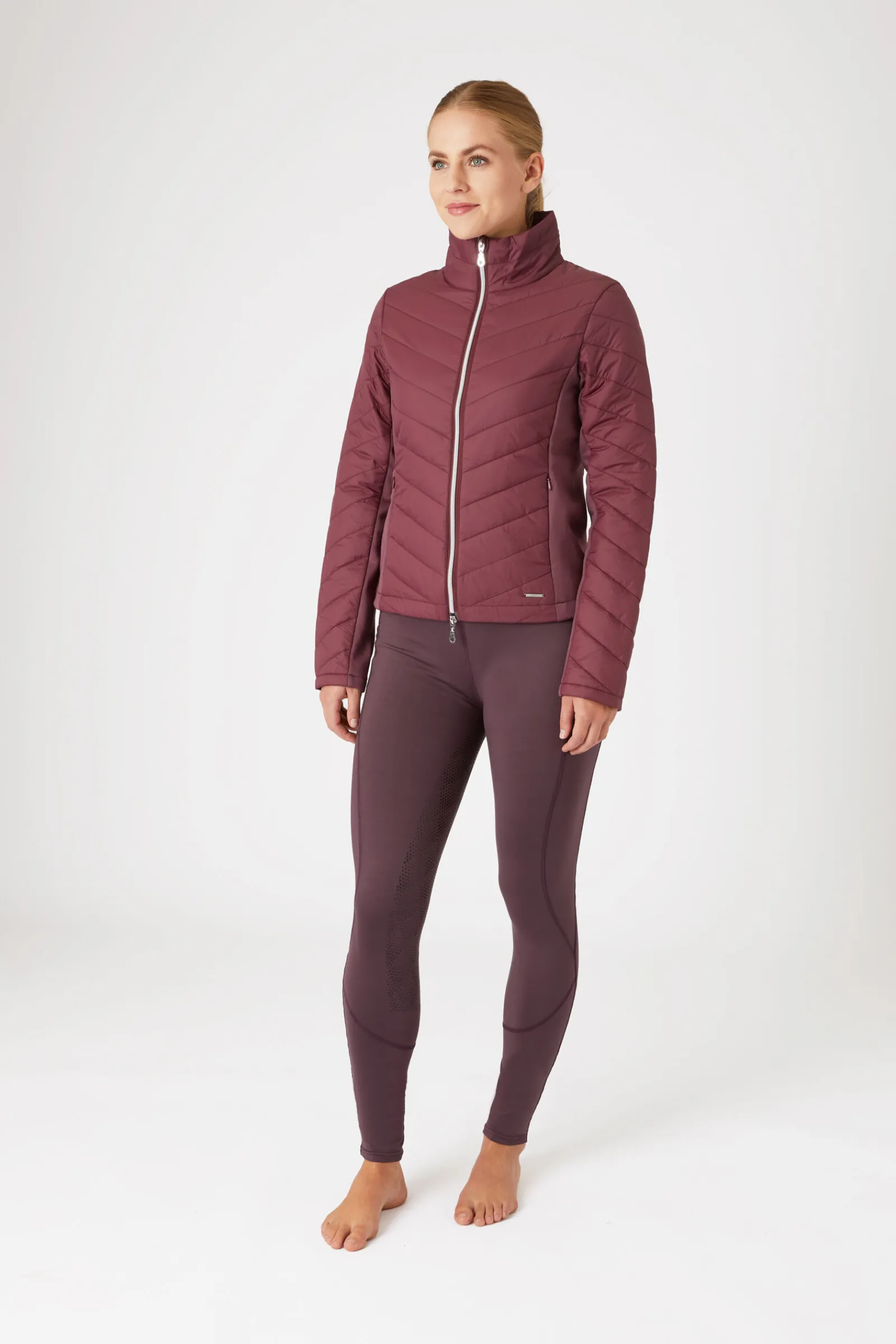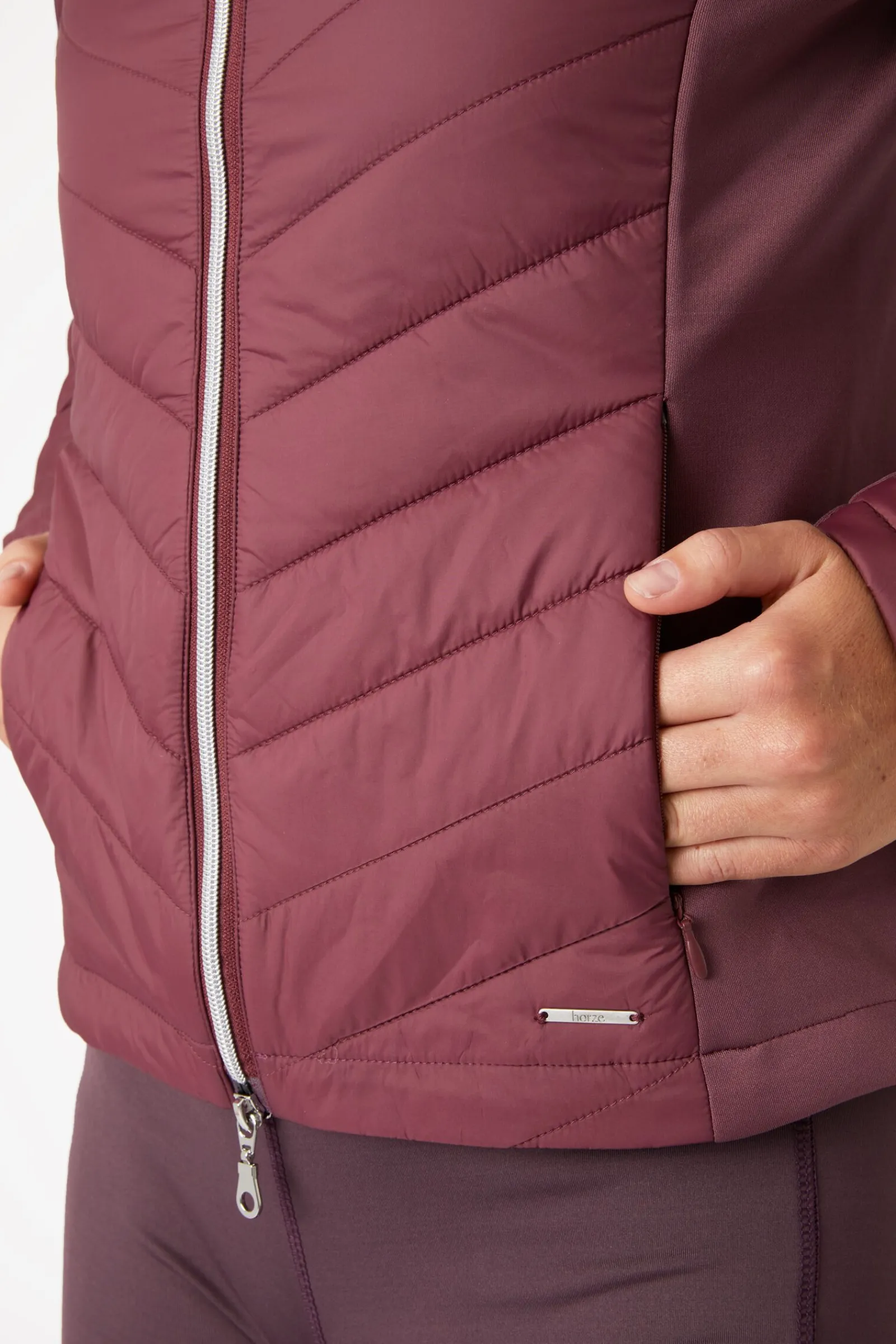 Horze Isla jakke kombinerer varm fôring med elastisk fleece akkurat der du trenger det.Det elastiske materialet på ermene og i siden holder deg fleksibel i salen, og de fôrede panelene er vannavvisende og pustende.To lommer holder telefon, nøkler og godbiter trygt på plass.Den kortere fronten gir komfort i salen.Bruk denne jakken med vår matchende Horze Isla tights (#36782) for et komplett antrekk!