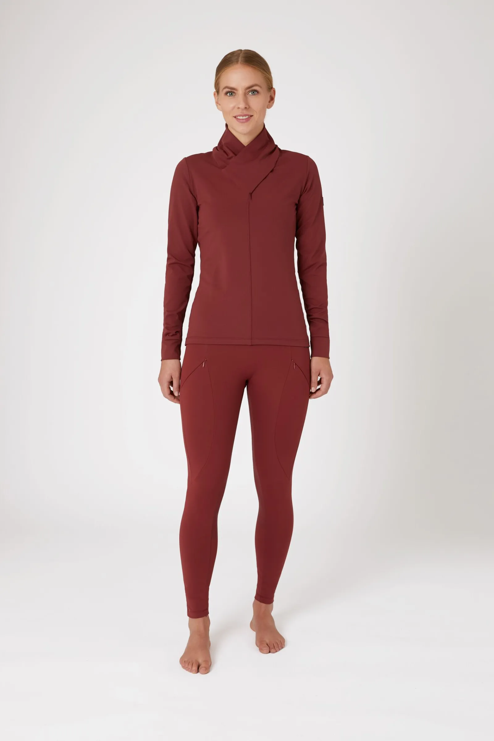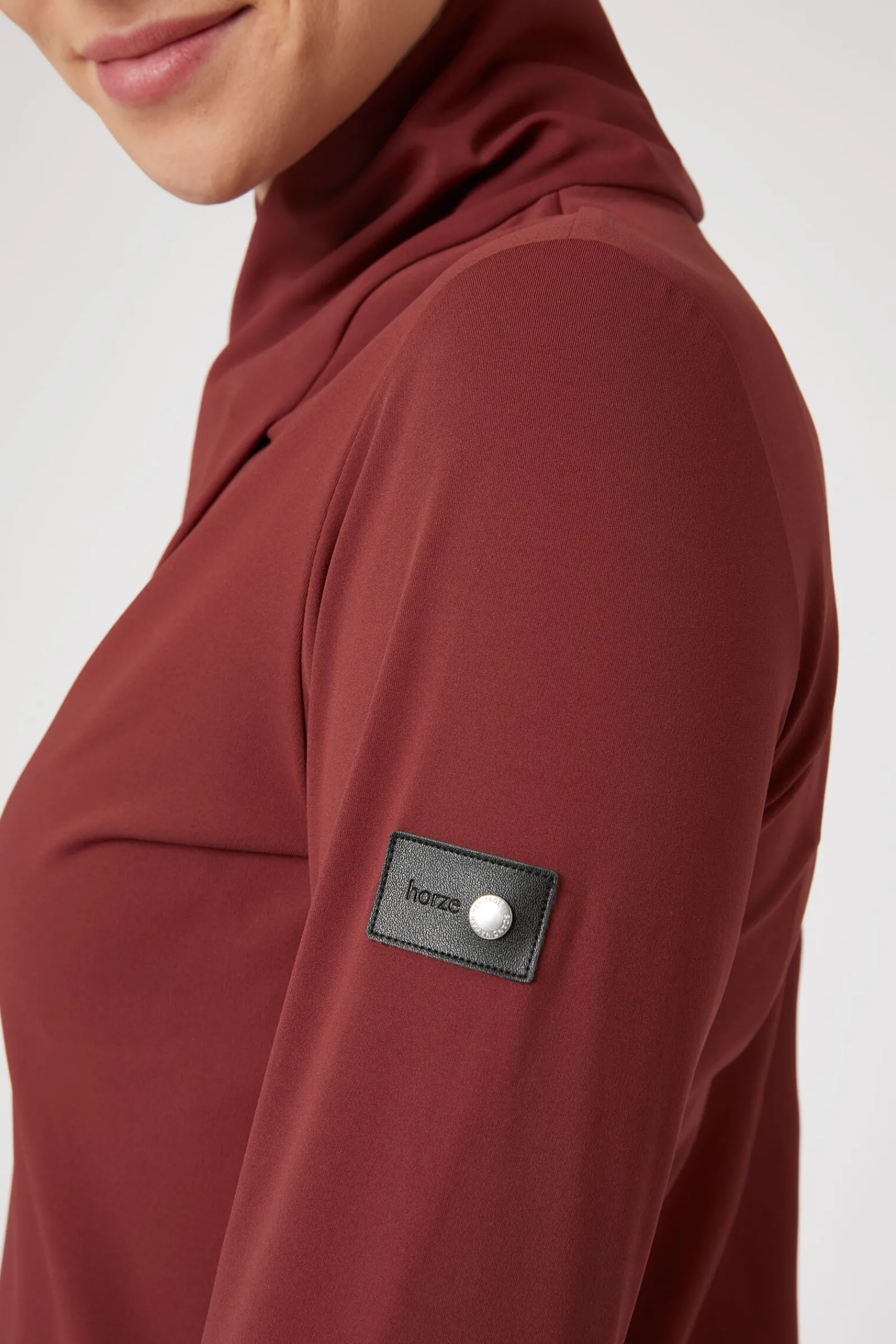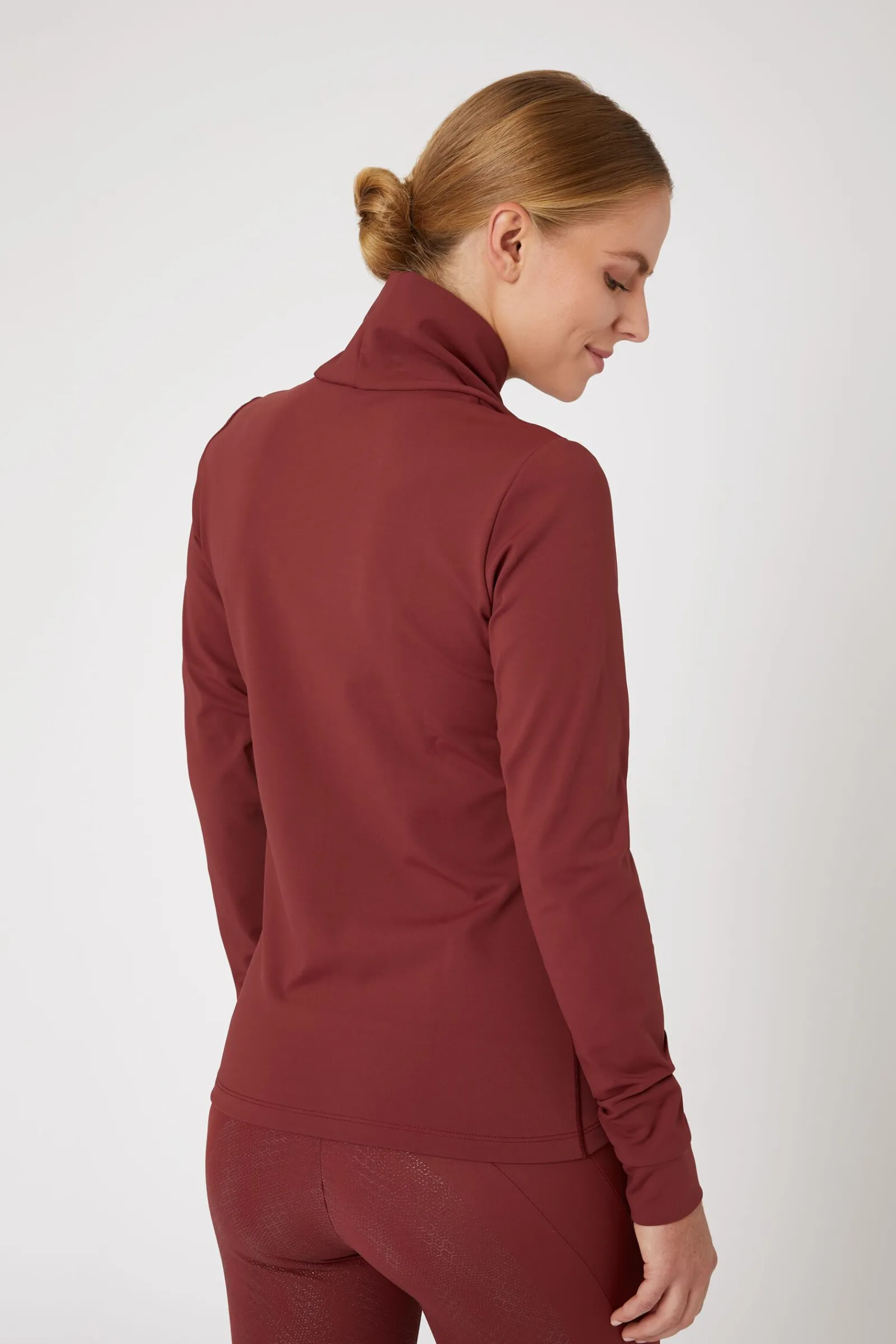 Vår Raquel treningsskjorte er laget av supermykt og pustende materiale.Komfortabel stretch gir deg den bevegelsesfriheten du trenger når du rir.Den er perfekt å bruke med en fôret vest om høsten, eller under en jakke om vinteren.Den kryssede halsen er en raffinert detalj som vil skille deg ut fra de andre, og den vil også holde deg varm i kjølig vær.