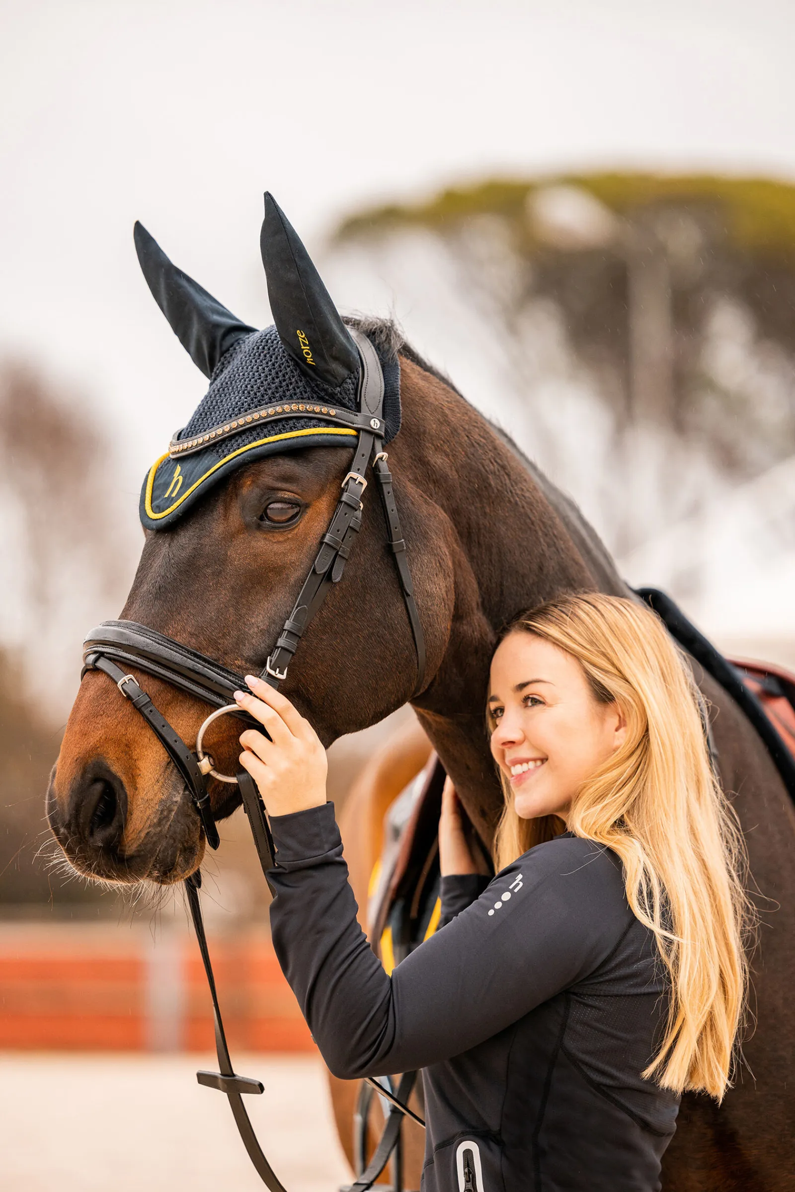 Horze Wicklow ørehette er laget av pustende, heklet materiale med elastiske, komfortable ører.Dynamisk stil og kontrastkant gjør det til et sporty alternativ til elegante ørehetter.Bruk den med resten av Horze Wicklow-kolleksjonen for et stilig utseende!