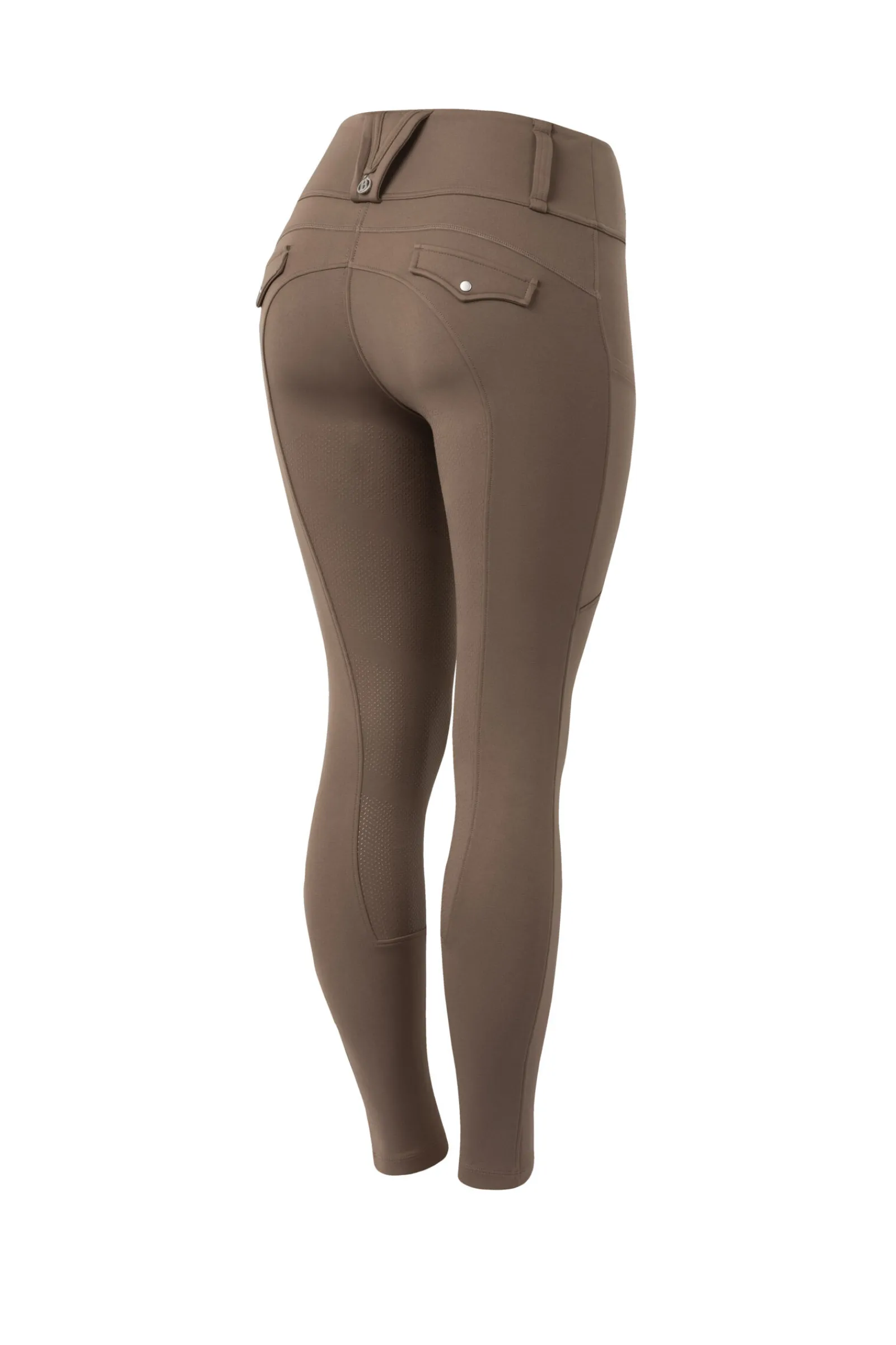 - Pull-on stil. Ligner på ridebukse. Uekte baklommer. Frontlommer til telefon. Ganske tykt stoff for perfekt kompresjon. Helforsterket med silikon. Pustende