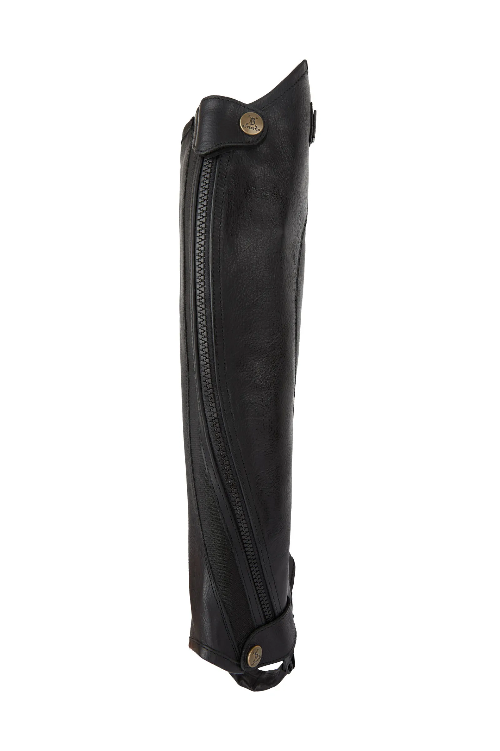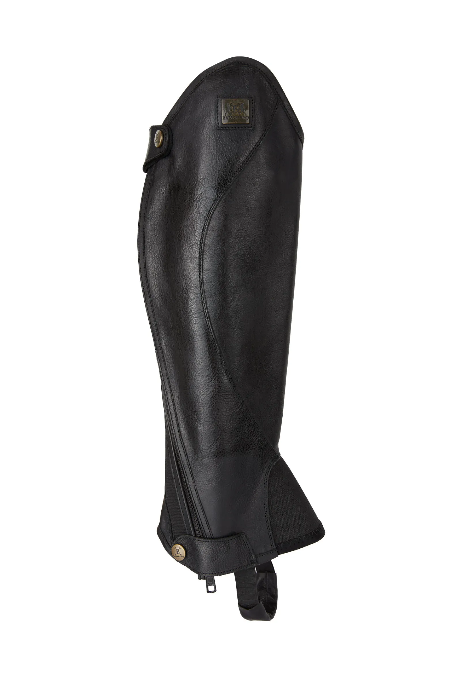 B Vertigo Cosmos knechaps er laget av mykt lær, og er designet med elegant formede sømmer.En glidelås bak gjør de enkle å ta av og på, og strikk rundt glidelåsen gjør dem komfortable hele dagen.Trykknappen lukkes trygt rundt glidelåsen.En metallogo på toppen gir ekstra eleganse til chapsen.Kombiner dem med din favoritt B Vertigo eller Horze sko, og du er klar for alt!