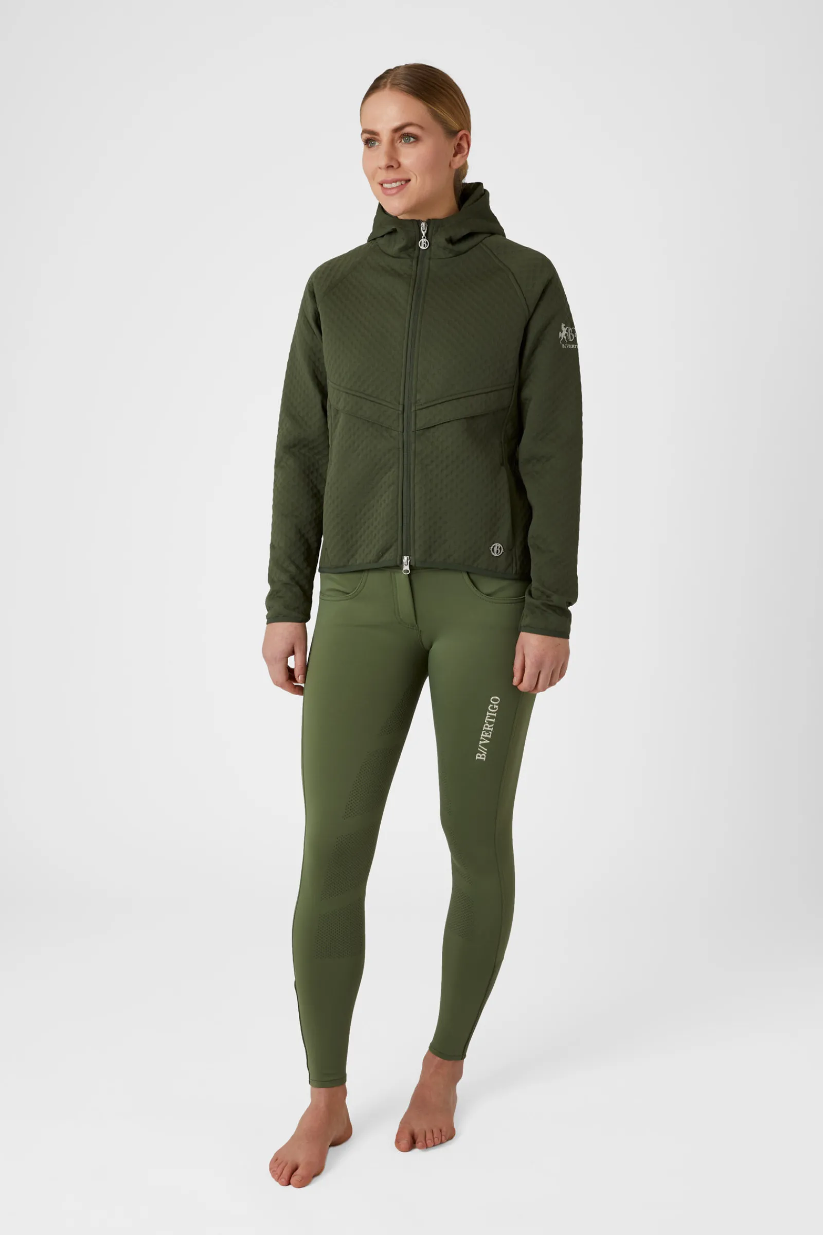 B Vertigo Norah treningsjakke er laget av pustende, elastisk scuba-stoff som både er mykt og lett.En hette gir varme ved behov, og glidelåslommer holder hendene dine varme og eiendelene trygge.Bruk denne hettejakken på dine rideturer om våren og sommeren.