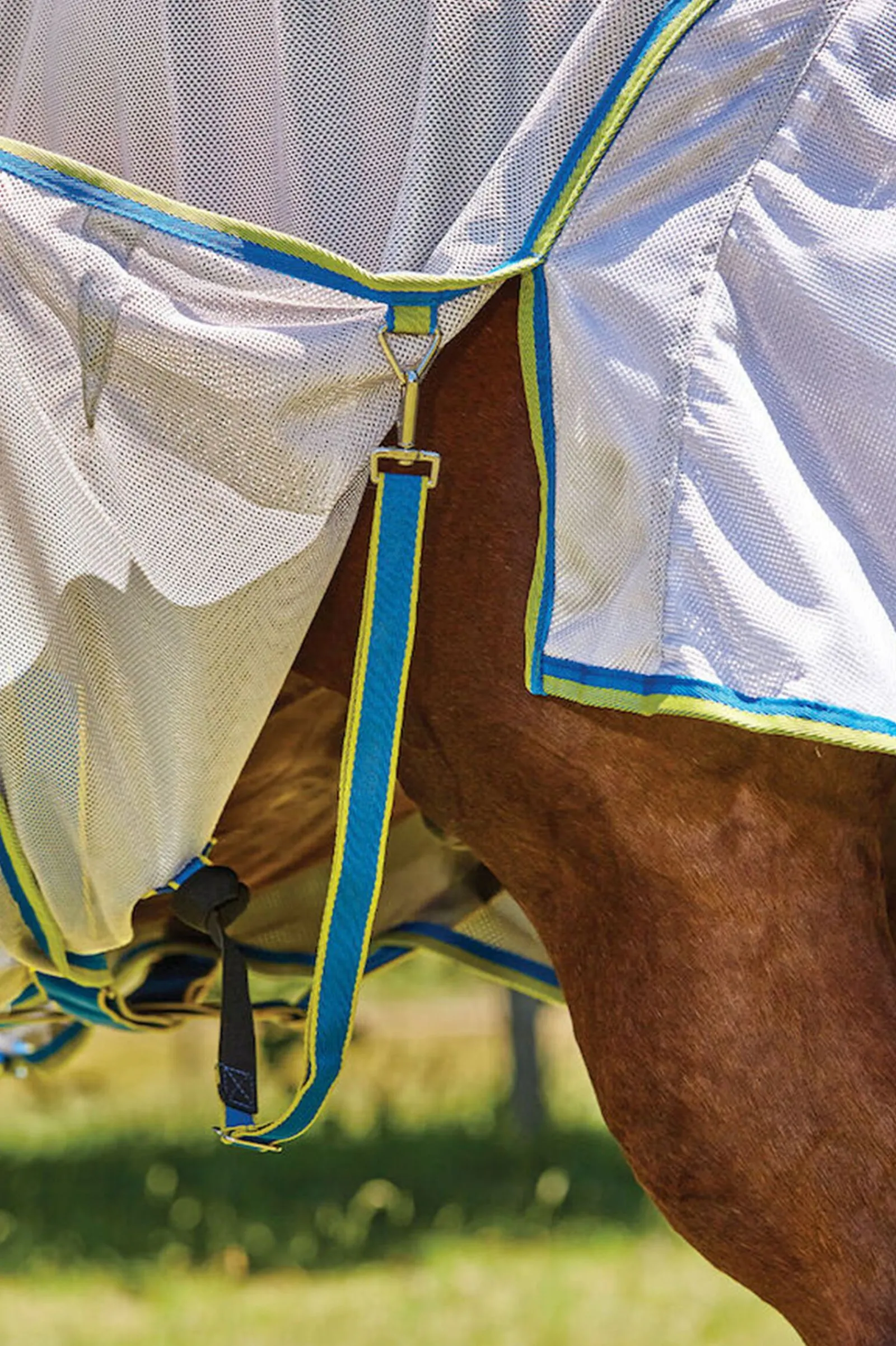 Bekjemp varmen med WeatherBeetas ComFiTec Zephyr Plus Mesh Combo Neck fluedekken. Åpent vevedesign for luftstrøm, full innpakning av haleklaff og justerbar Ezi-clip-frontlukking. Gir over 75% UV-blokkering.