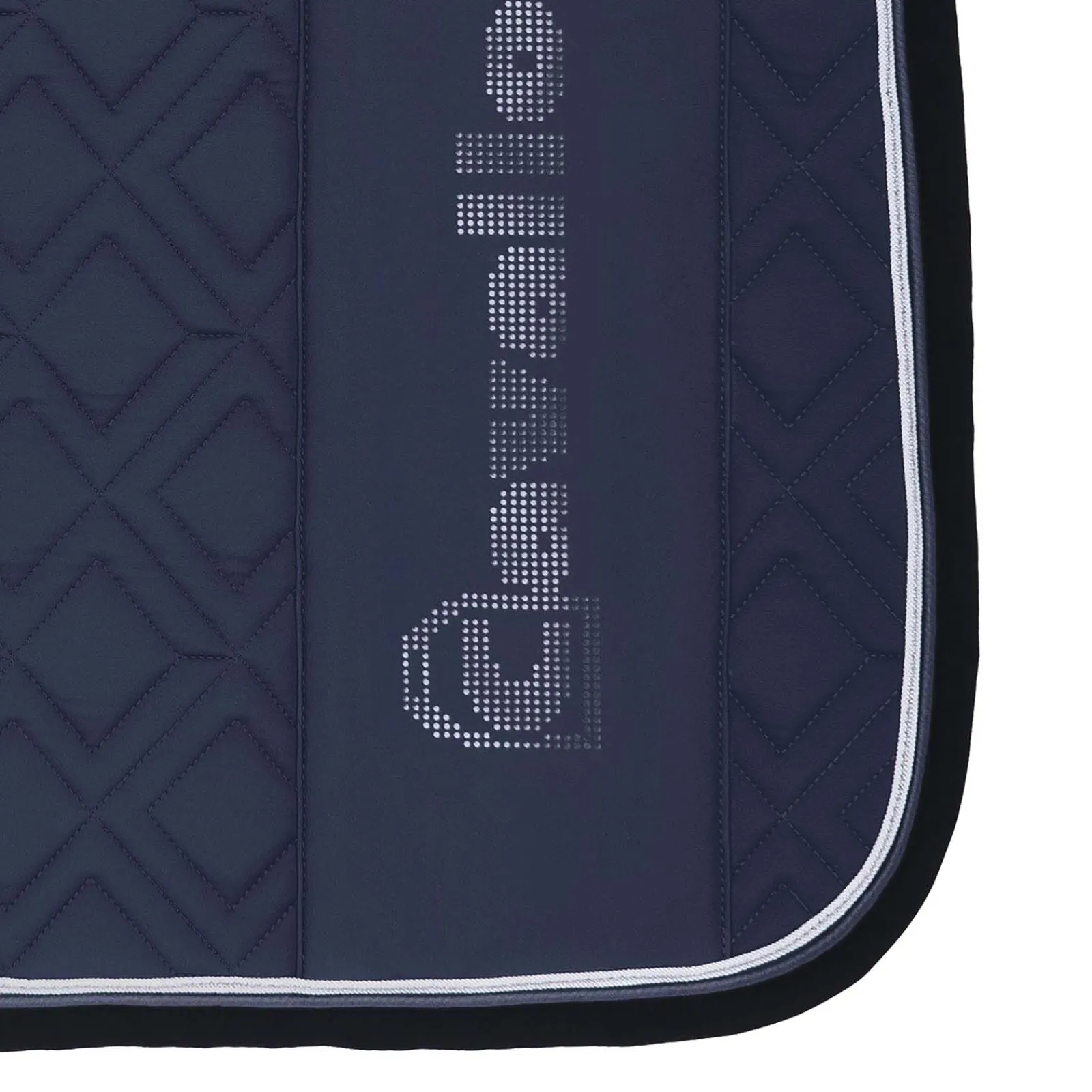 Den sporty, funksjonelle sjabraken er laget av et elastisk softshellmateriale.Det utvendige stoffet er laget av softshell, noe som er særlig lett å rengjøre.Hele sjabraken har dobbel diamantvattering.Begge sider har en vertikal, glatt, ensfarget stripe på ryggen.På stripen er en perforert, stor, vertikal Cavallo-logo.Det er et glinsende, reflekterende materiale under hullene til Cavallo-logoen.Forsterking foran er laget av memory foam, noe som sikrer en optimal posisjon under salen.Sjabraken er innrammet av et hvitt bånd med en smal sølvstripe.Den hurtigtørkende og fukttransporterende innsiden i mesh er særlig skånsom mot pelsen, og gir maksimal komfort.En fôring som holder formen gjør at sjabraken ligger perfekt på hestens rygg.