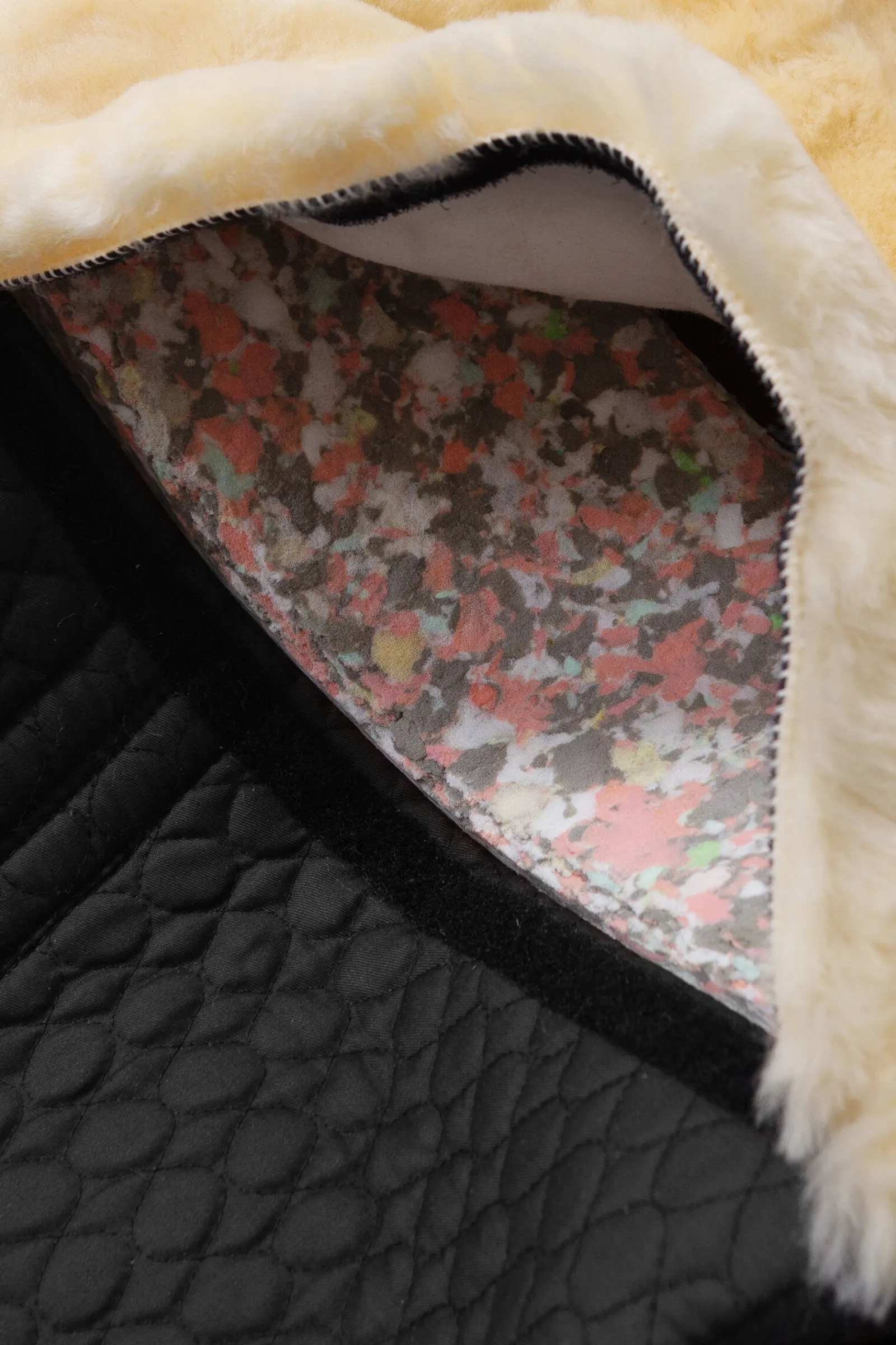 Barbakpaden i spansk stil er laget i lammeskinn, og derfor føles det som om du sitter på en sky. Tykkelsen på ullen er omtrent 30 mm i seteområdet. Den høye for- og baksvisselen gir ekstra støtte. Avtakbart fôr på begge sider av ryggraden gir bedre komfort i setet, og beskytter hestens rygg.