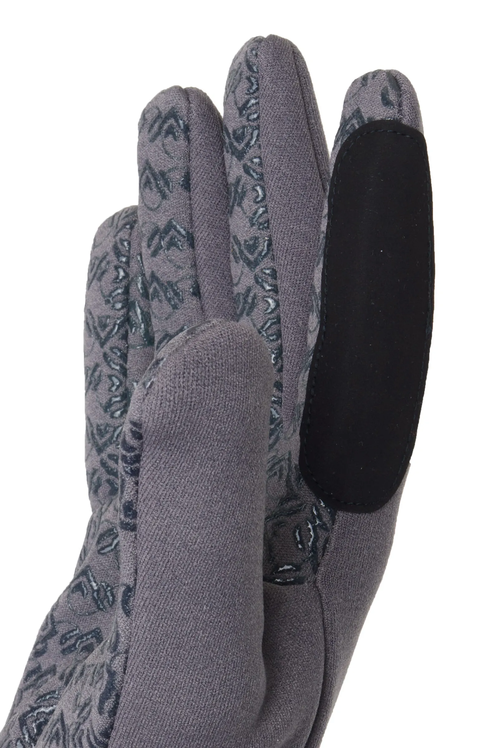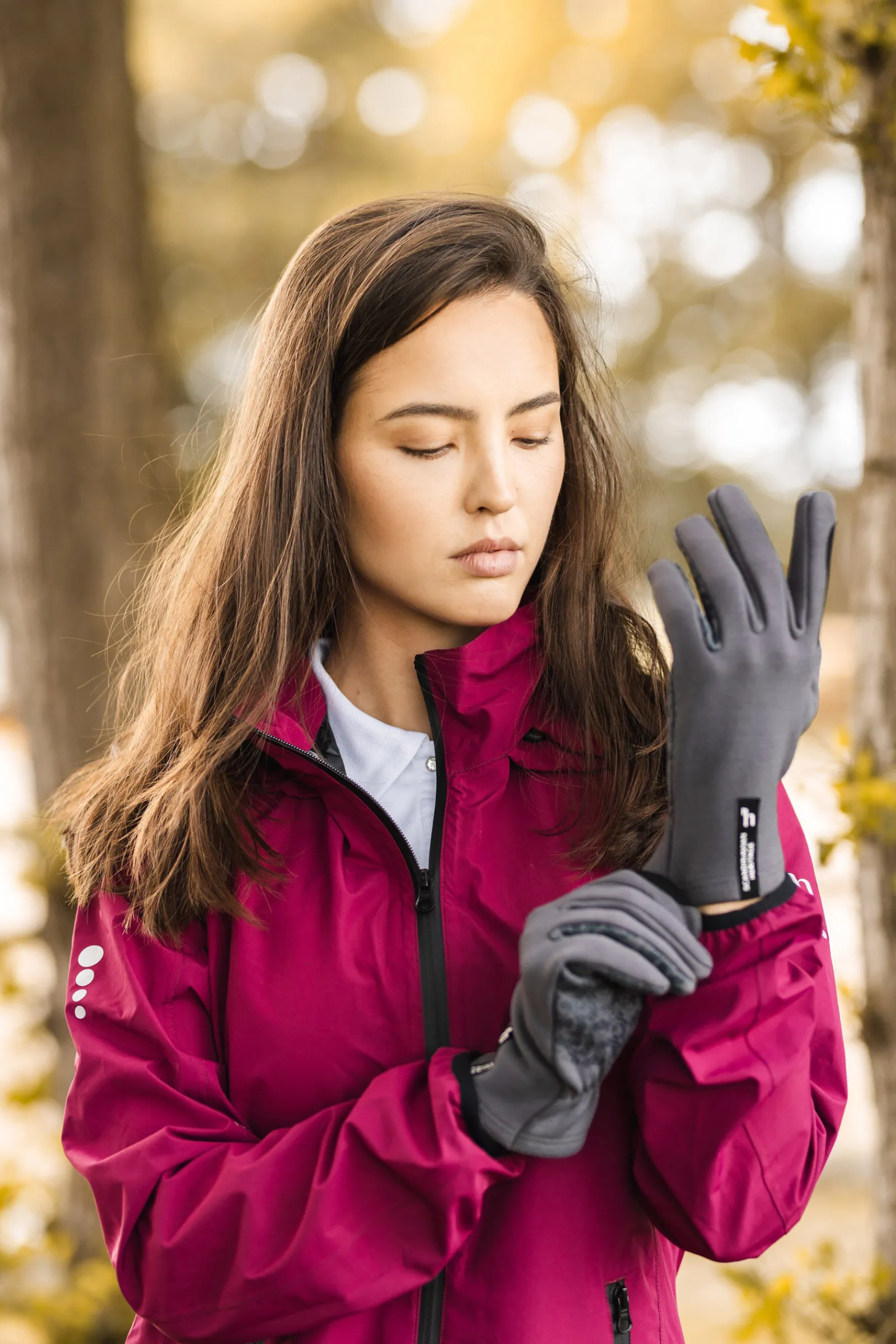 Ridehansker du drar på deg, med heldekkende silikontrykk som gir et godt grep om tøylene. Lite logomerke.
