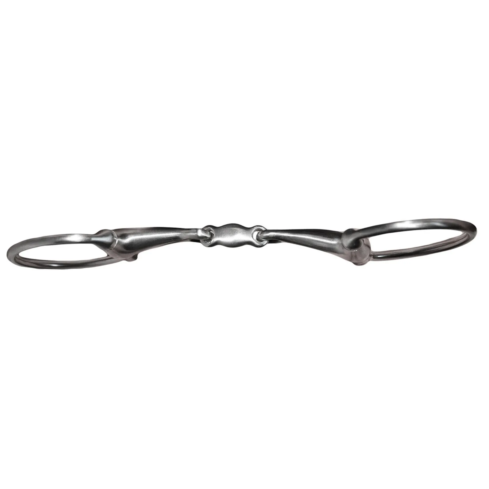Effektivt og ergonomisk to-leddet bitt med en kombinasjon av muffeform og måneformet midtledd, for bedre tungefrihet. Børstet rustfritt stål.