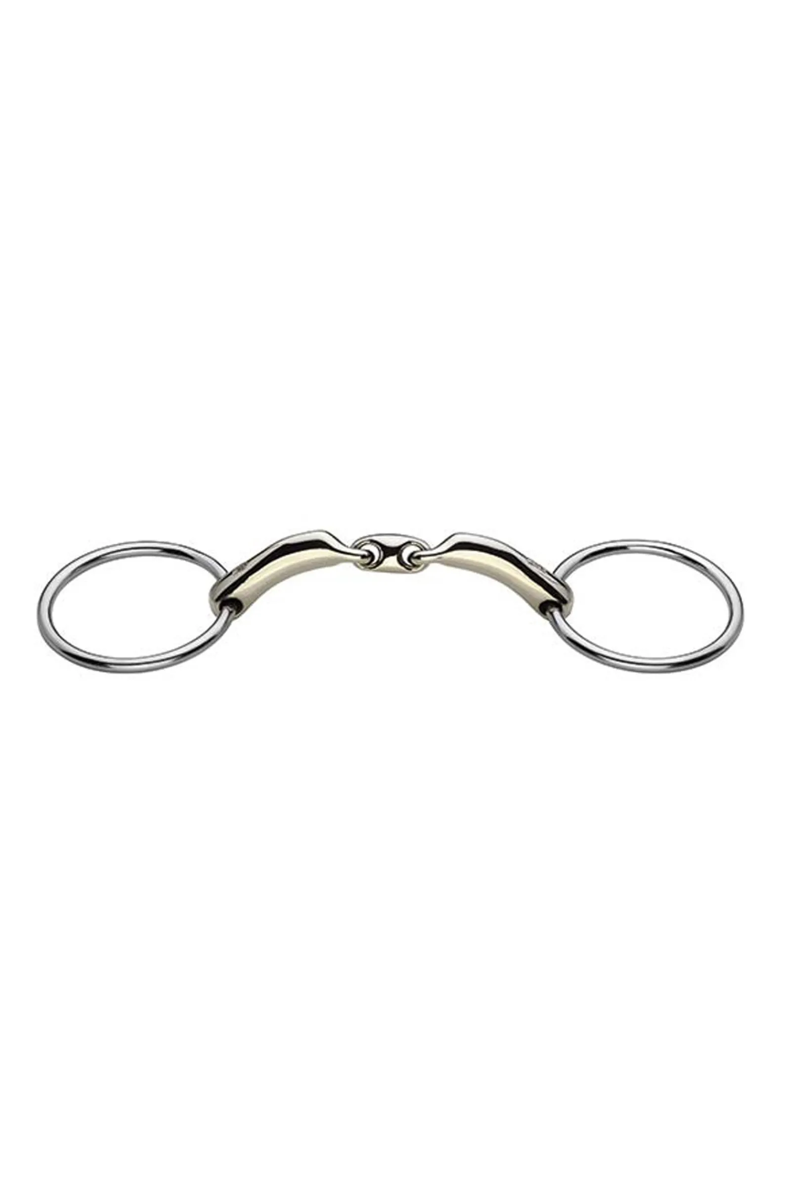 Munndel: Tredelt.Materialer: Sensogan med rustfritt stål på sidene.Tykkelse på bittet: 16 mm.Diameter på ringene: 70 mm.Type ring: Løs.
