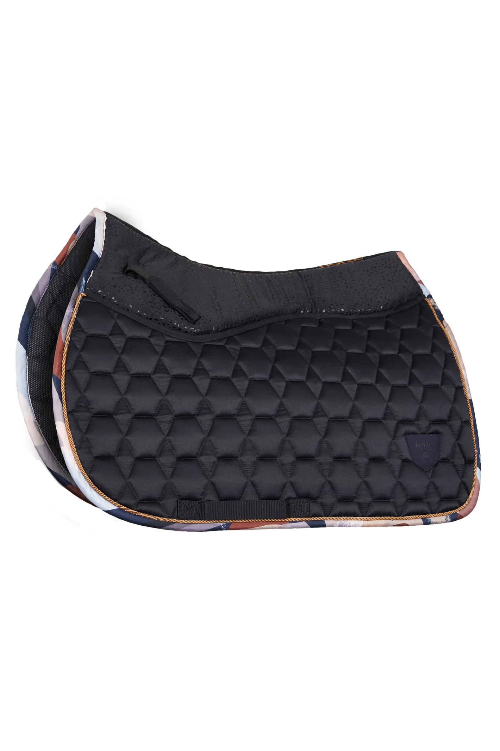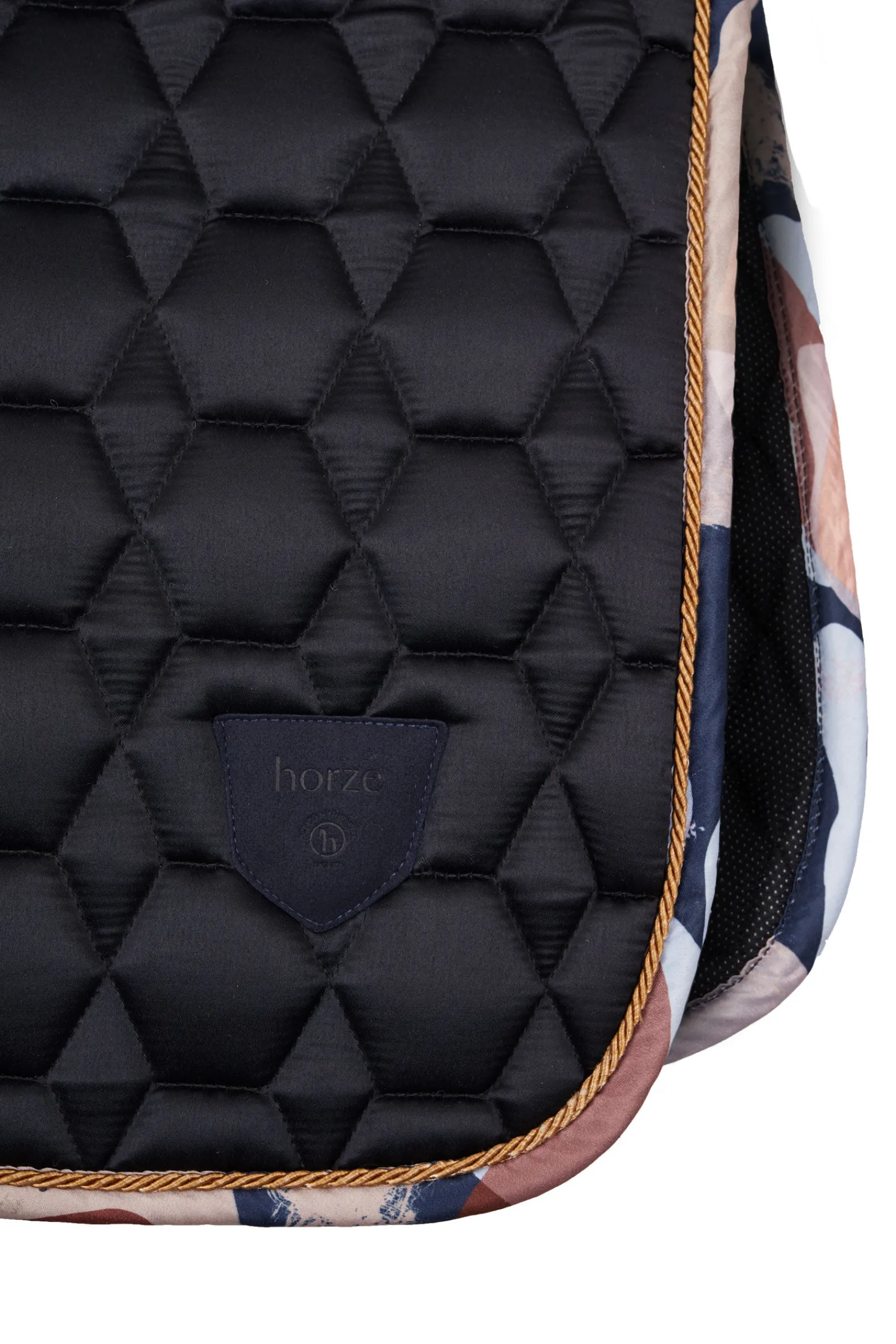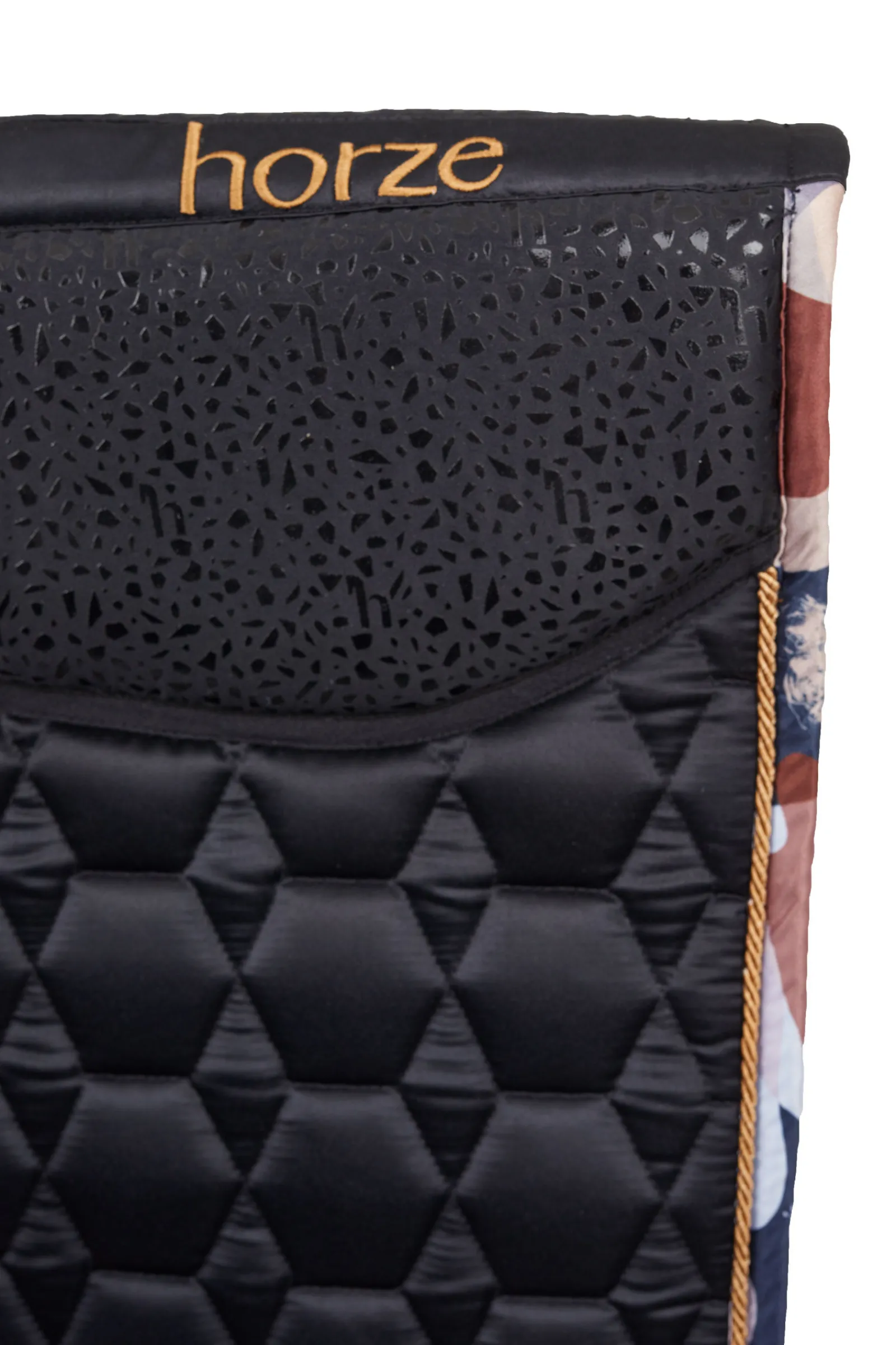 Sjabraken kommer i et sateng-lignende materiale som gir et elegant preg på hesteutstyret ditt. Det fôrede salromådet er forbedret med anti-skli silikontrykk, noe som gir en trygg og stabil passform. De justerbare gjordfestene og de lange salfestene gir et justerbart og trygt feste til salen. Det vatterte mønsteret gir et klassisk utseende, mens den fukttransporterende innsiden holder hesten din tørr og komfortabel. Med kontrastkant og Horze-logo viser denne sjabraken at den fokuserer på detaljer. Få en bedre rideopplevelse med Horze Terrazzo allroundsjabrak, en nødvendighet for alle ryttere.
