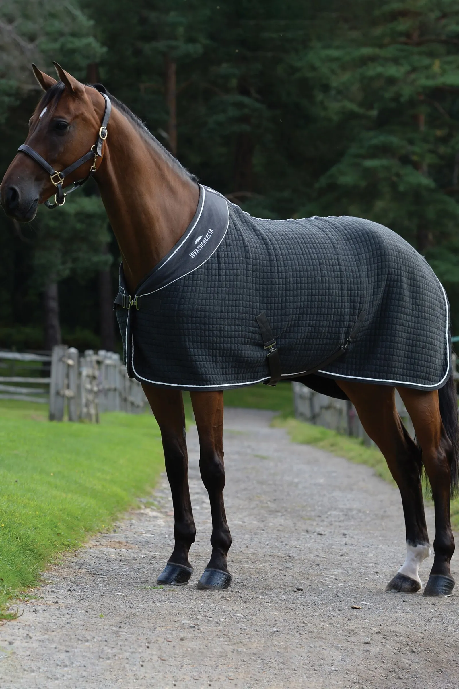 Weatherbeeta Thermocell Cooler standard hals er en allsidig cooler som har en ultramyk følelse og stilig design. Det kommer med multi-lag stoff og utmerkede fukttransporterende egenskaper, slik at din hest holder seg tørr og komfortabel.Lett men varmt, noe som gjør det ideelt for reising eller for bruk etter trening.Kommer med en enkel justerbar spenne foran, lave kryssgjorder og halesnor.