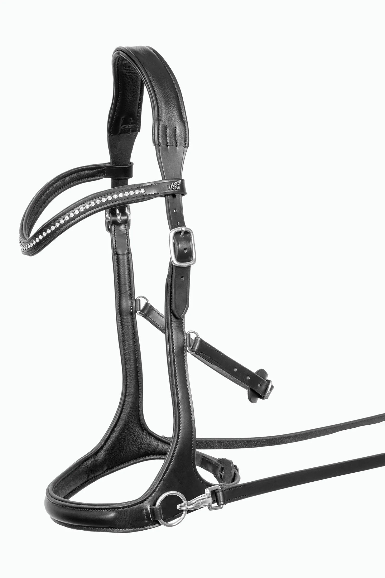 Bitless bridle, leather lined, web reins, curved browband with glitter stones, the soft alternative to riding with bits.