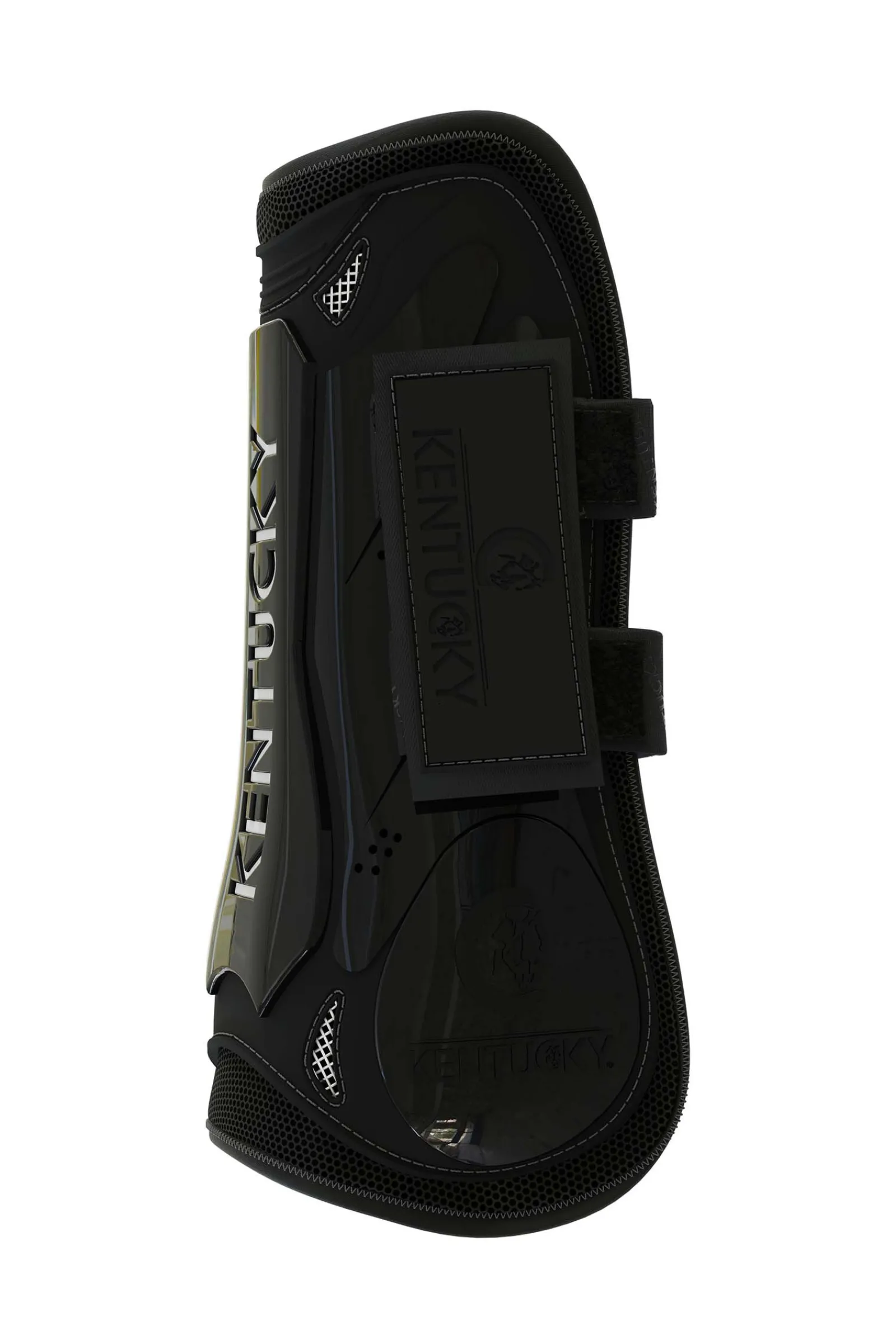 Beleggene er laget av et sterkt skall i TPU med flere ventilasjonshull og en større triangel med mesh for ventilasjon.Der hvor hesten komprimerer leddet har Kentucky lagt til myke, naturlige gummistykker for å unngå friksjon.Den innvendige delen av belegget er forsterket med et ekstra lag TPU for å motstå høy slitasje.Beleggene er flotte å bruke til den daglige treningen hjemme, ettersom de er enkle å ta av og på med det ene borrelåsfestet.Stoff og materialeSenebeleggene med borrelåslukking er laget med Kentuckys svært pustende og velkjente 3D SpacerDenne 3D-teknologien brukes både i belegg og dekken.De har et robust utvendig skall laget av lett, men samtidig sterk TPU.Shape and SizeTakket være det anatomisk formede designet passer belegget fint rundt hestens bein for å gi maksimal komfort og beskyttelse.Dette gjør at hesten får maksimal bevegelsesfrihet og kan hoppe bedre.