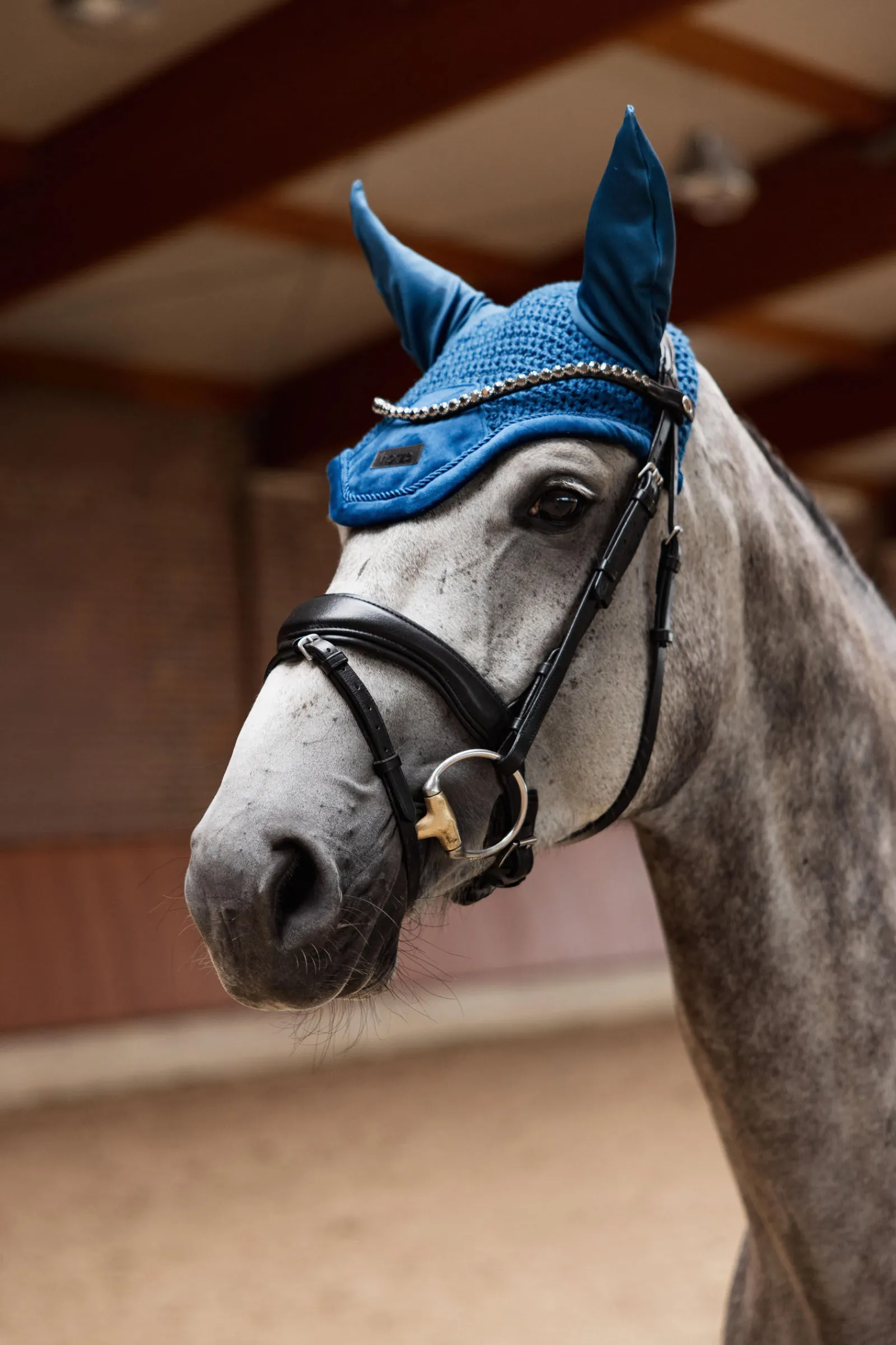 Forbedre hestens utseende med de stilige og samtidig funksjonelle Horze Optical Vibration ørenettene. Suverent laget med et dry-fit stretch mesh-stoff ved ørene, tilbyr disse kvalitetsørenettene eksepsjonell komfort og bevegelsesfrihet for hesten din. Det elegante myke hekledesignet komplementerer det myke fløyelsstoffet på frontskjermen og kantingen, som er vakkert ferdig med myk taukanting i tonale farger. Stilisert for å matche Horze Optical Vibration salunderlaget (tilgjengelig som dressur- eller allroundsnitt) for et sofistikert utseende som garantert vil vekke oppmerksomhet uansett hvor du går.