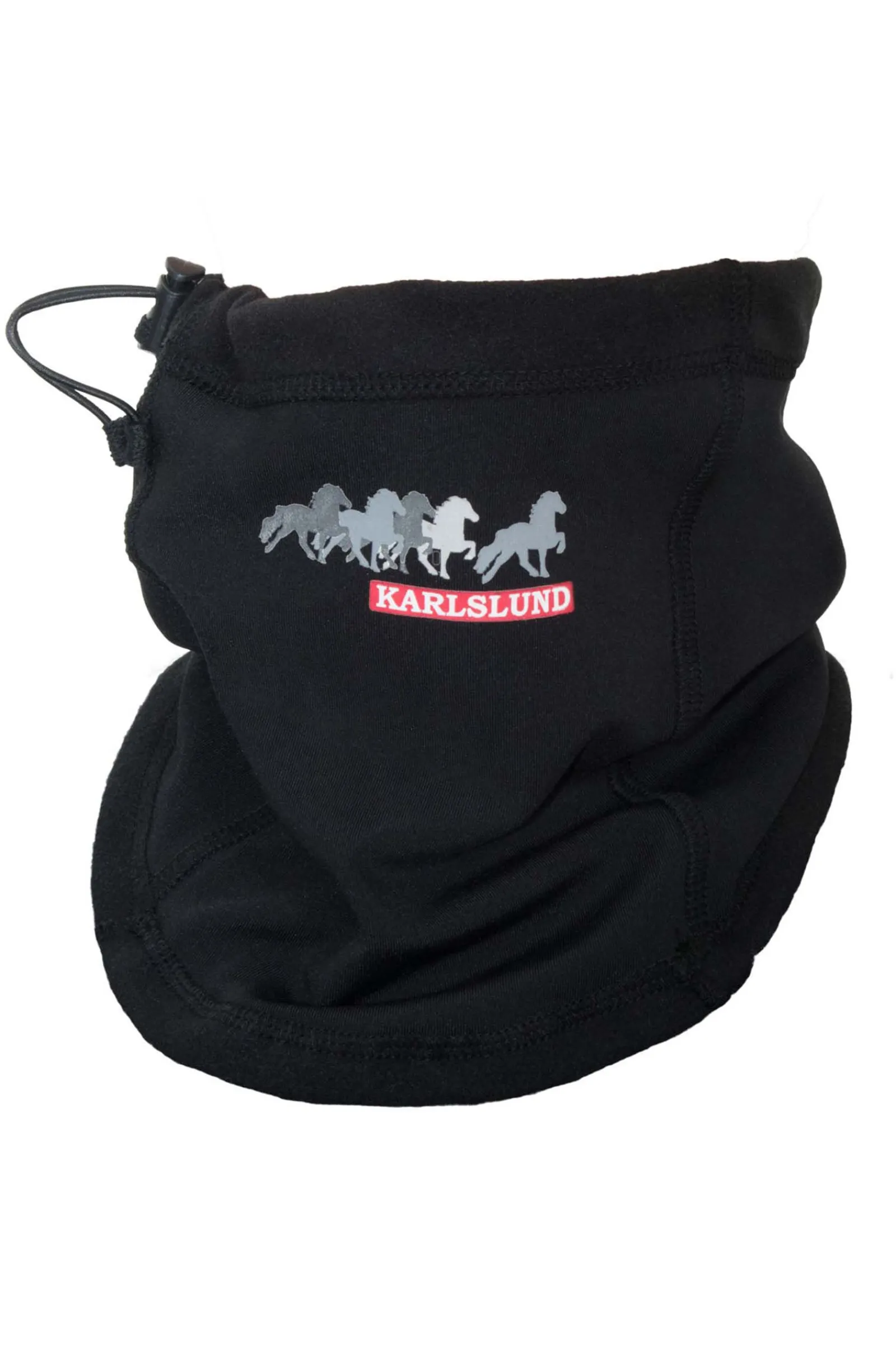 Fin, justerbar halsvarmer i vinnavvisende stoff, med fleece på innsiden.