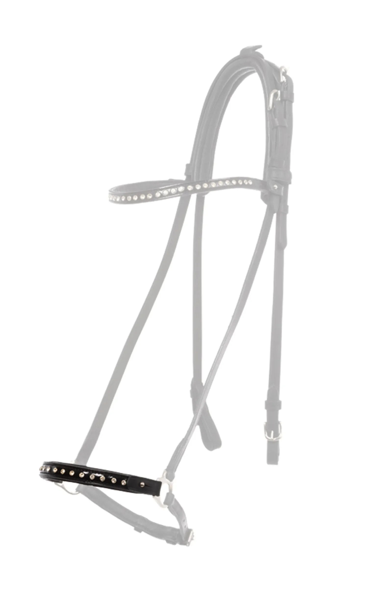 The «Glansandi» nosepiece in patent black has sparkling white rhinestones.Important: The noseband frame (#344095) is required for the nosepiece.