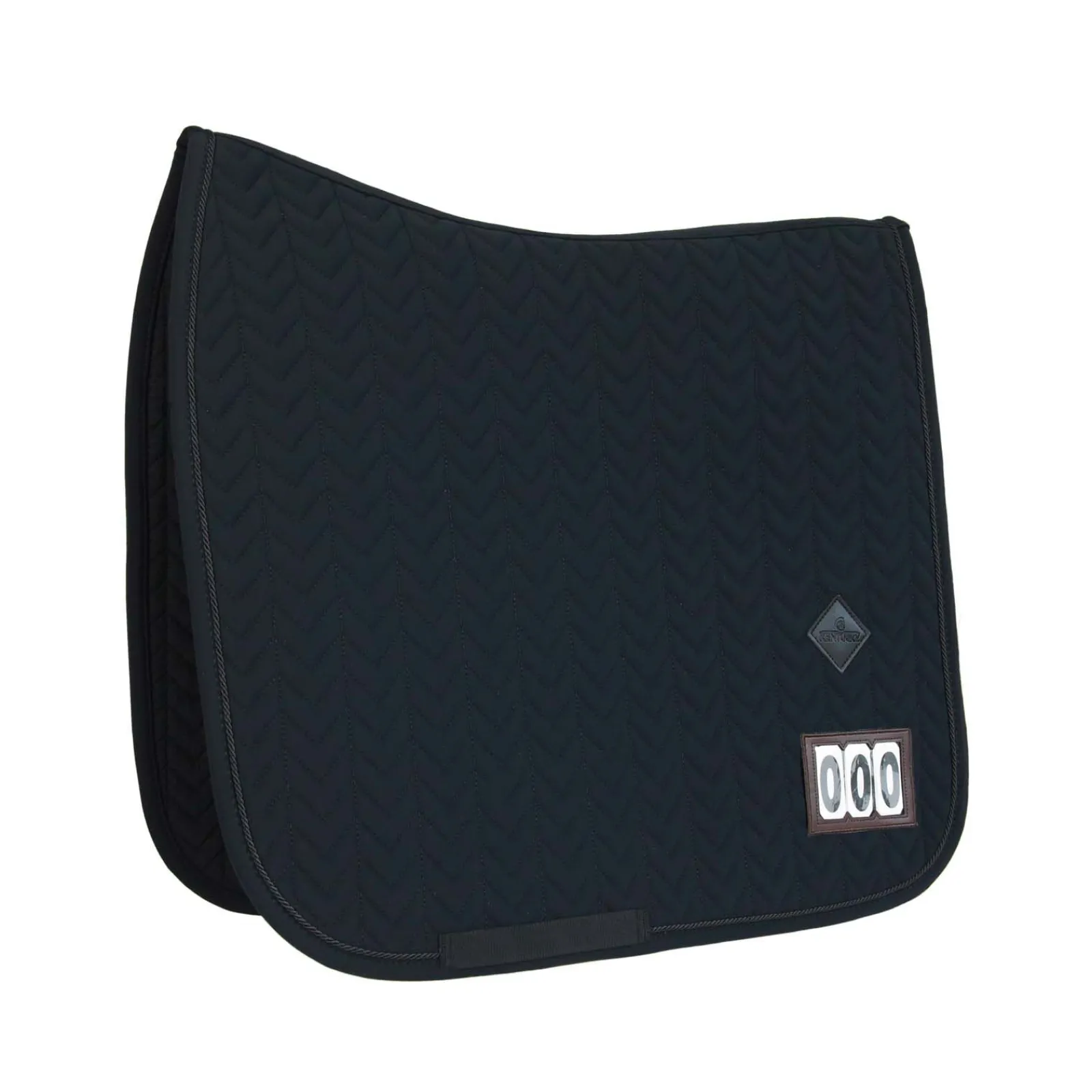 Fishbone dressursjabrak til stevne har en avtakbar, kunstig lærlapp som gjør at du kan tydeliggjøre ditt startnummer (tre serier med nummer kommer med sjabraken).Sjabraken har unik fiskebeinsvattering, og er laget av et pustende materiale (43% nylon, 43% polyester og 14% spandex), og er derfor perfekt til stevne, eller til trening hjemme.Du kan også erstatte nummerlappen med Kentucky-logo.Sjabraken har ingen irriterende stropper for feste i salen, kun en nylonstropp til gjorden.Diskret logo i samme farge som sjabraken, og har samtidig plass til brodering ved behov.Maskinvaskes på 30°, og skal ikke tørketromles.