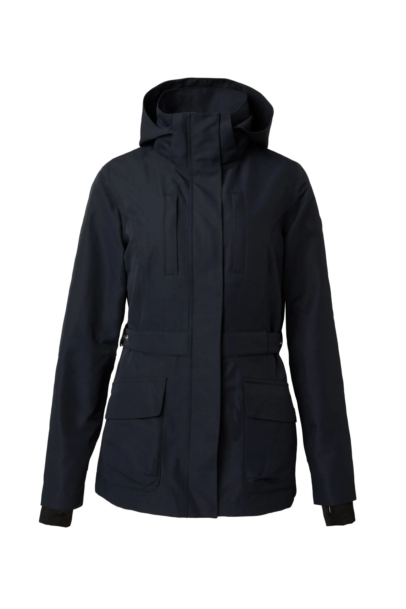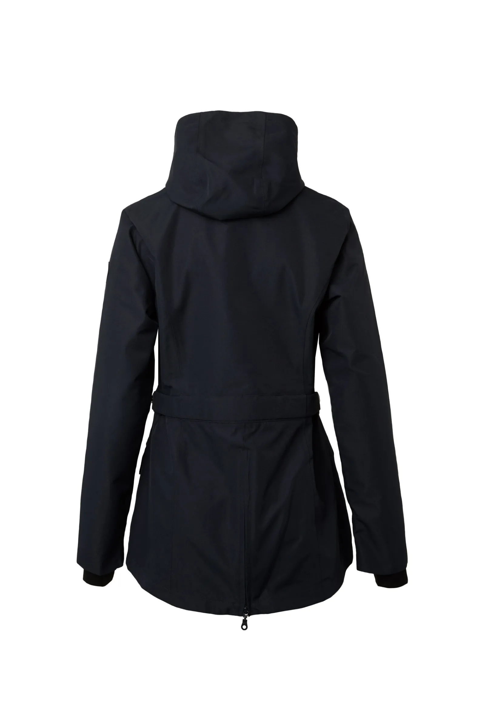 Et stilig design som er innsvingt i livet gir denne damejakken et fint, skreddersydd utseende. Lommene holder alt for deg, fra godbiter til bilnøkler og mobiltelefoner. Horze-emblemet på skulderen og fine detaljer som trykknapper og sterke nylonglidelåser gjør at denne kvalitetsjakken er like holdbar og funksjonell som den er fin. Stoffet er pustende og vanntett, og vil beskytte deg mot det varme sommerregnet. Ryggsplitt vil hjelpe deg med å dekke salen og gir mye bevegelsesfrihet. De sofistikerte fargene matcher med mange plagg i sesongens kolleksjon.