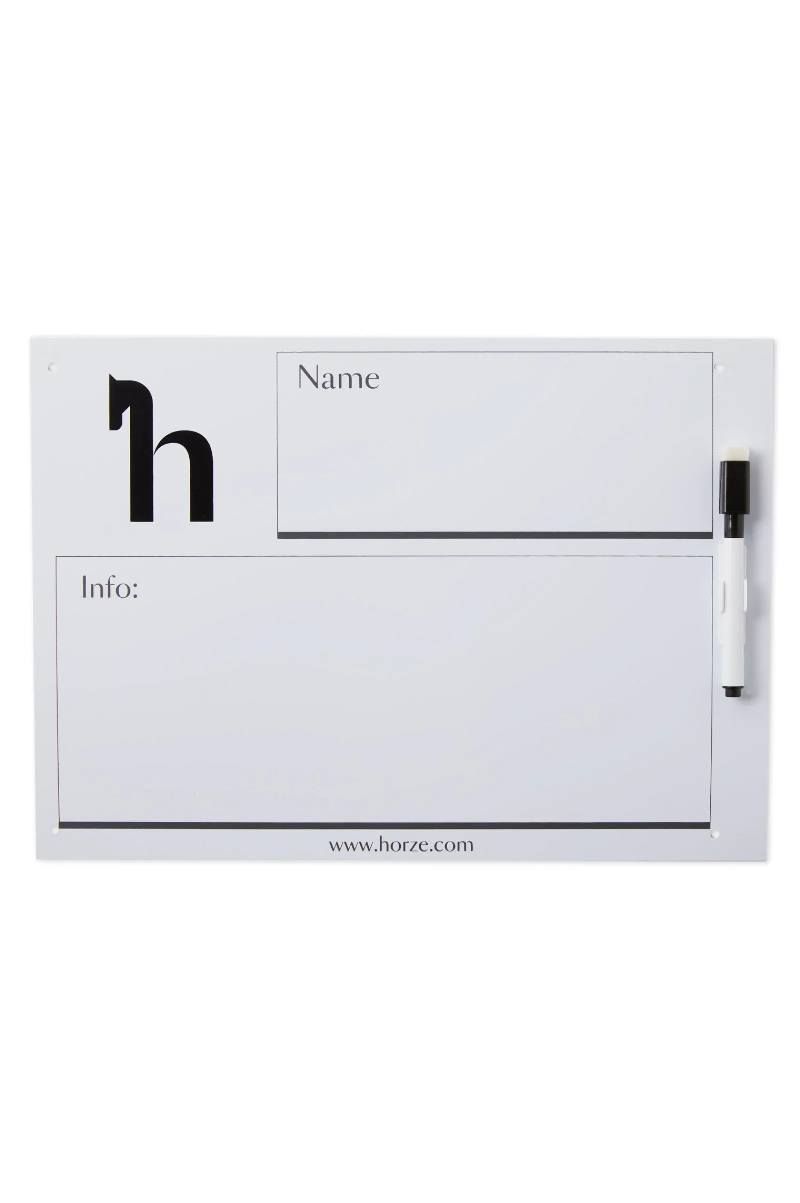 Denne praktiske whiteboarden er ideell å ha i enhver stall for notater eller fôringsinstruksjoner. Den lille Horze whiteboard måler 34,5 cm x 24,5 cm, og har hull i hvert hjørne for enkel montering. Kommer komplett med whiteboard-tusjer og tavletørker.