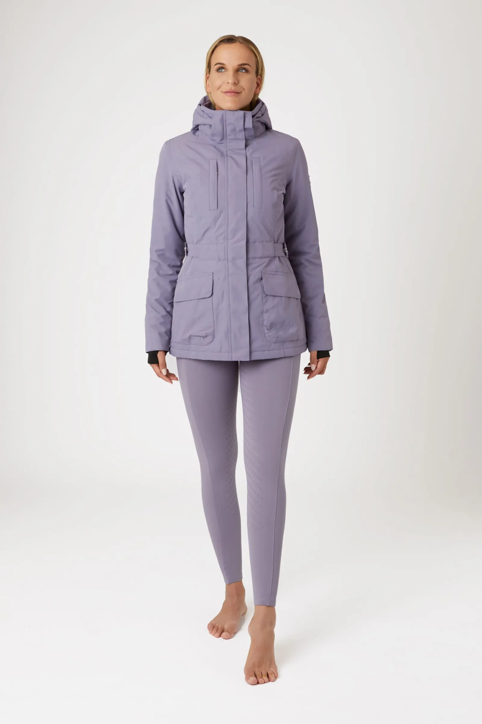 Vår Jadine vinterjakke er laget av robust, vanntett materiale.Den er lett, men samtidig varm.Pustende stoff holder deg godt ventilert når du rir.En glidelås bak sikrer plass når du rir.Hetten er avtakbar.Glidelåslommer er perfekt for oppbevaring av telefon og nøkler.