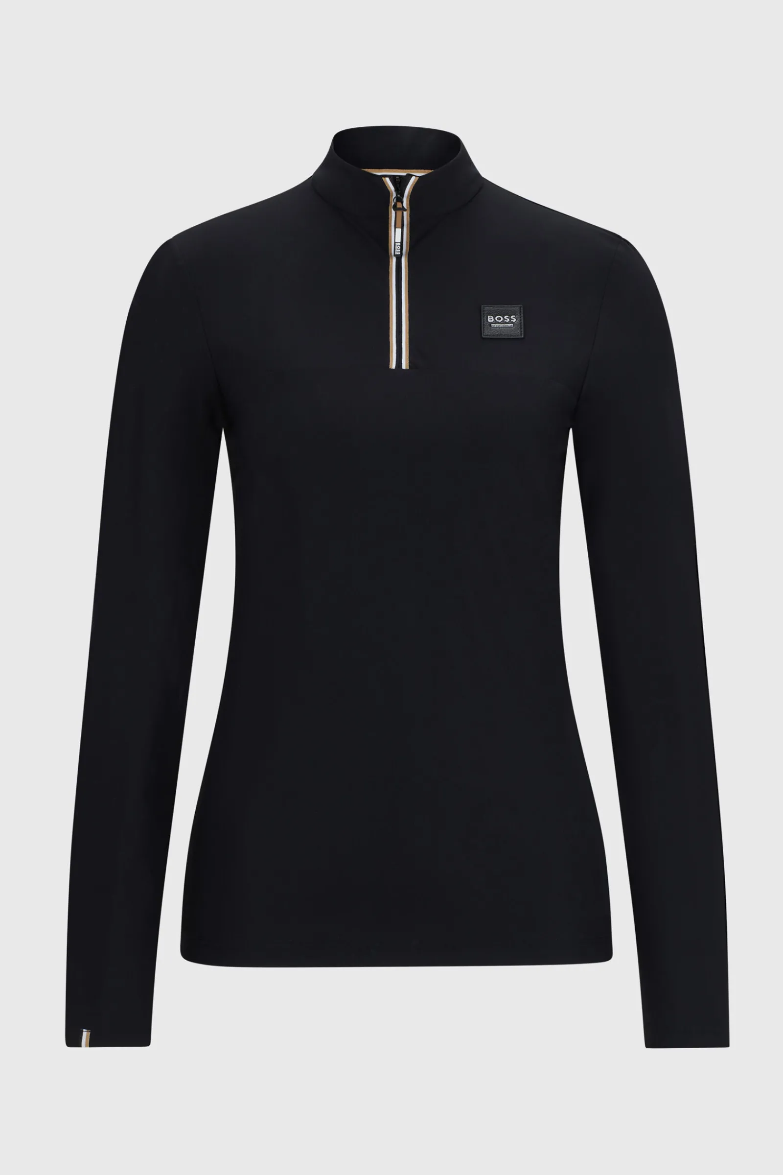1. lags treningsskjorte med signaturstripe langs glidelåsens linje, lite signaturstripeflagg på høyre erme over mansjetten og BOSS-logo i kunstskinn på venstre bryst.