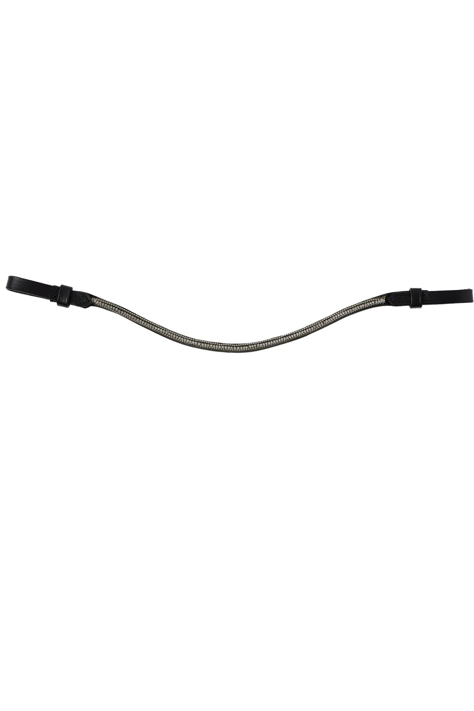 Horze Munich pannebånd er designet i en elegant buefom med en rad små krystaller og to rader med fin metallkjede.Det kan enkelt festes til ditt favoritthodelag ved to lærløkker.