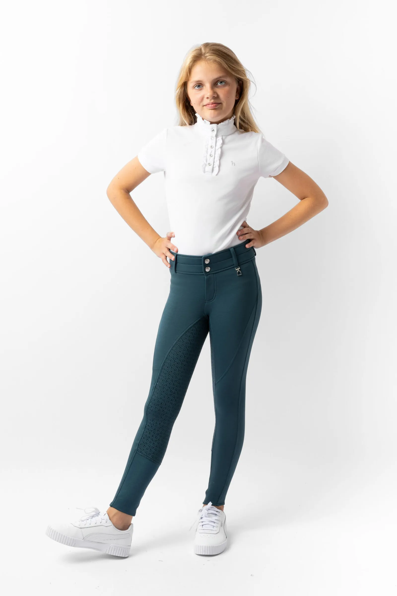 Rhea ridebukser er et supert valg til ridning om vinteren.Varmt materiale holder kulden borte, og et helforsterket silikonsete gir akkurat perfekt mengde grep.To knapper lukker den sikkert.Beltehemper sikrer perfekt passform.